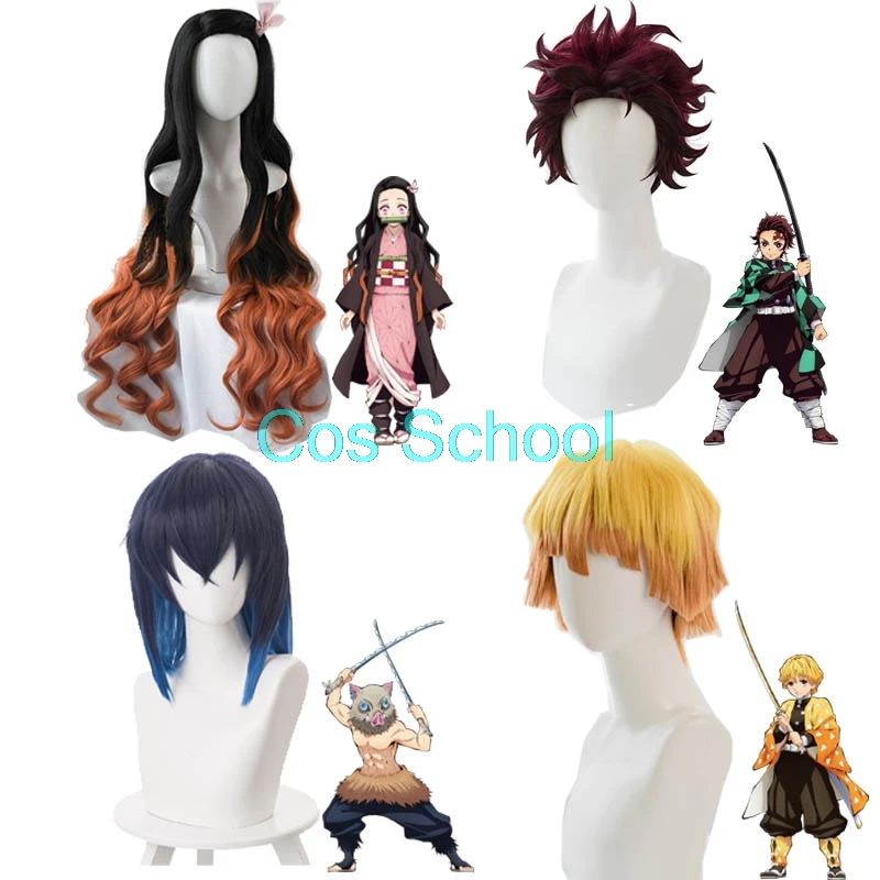 Cos School Demon Slayer Kimetsu no Yaiba Nezuko Tanjirou Kamado парики зенитсу агатсума Косплей парики аниме парик + шапки