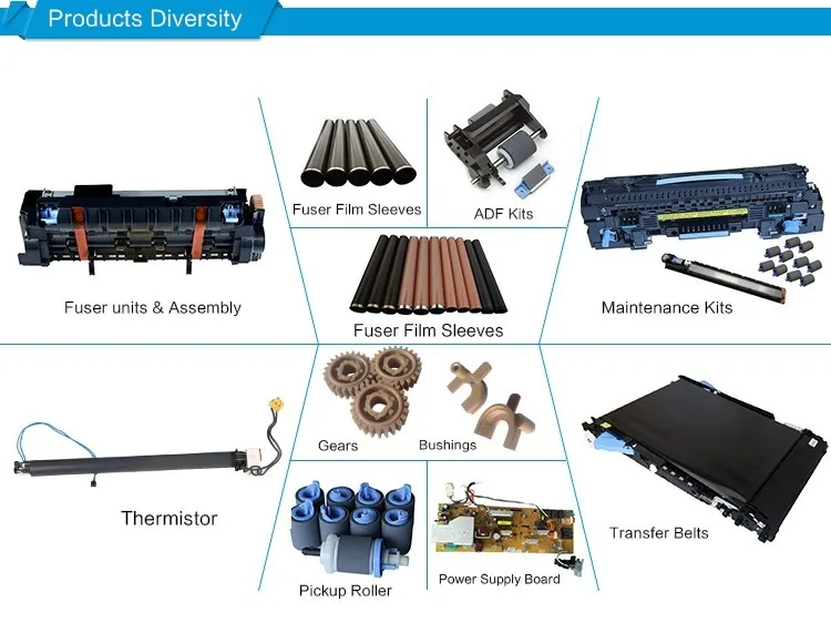 2.Запасные части лазерного принтера:Fuser пленка, нагревательные элементы, верхний ролик и ролик давления, трансферный ролик, разделительная прокладка, Пикап ролик, формат платы, плата питания, сканер, и fuser блок и т. Д.
