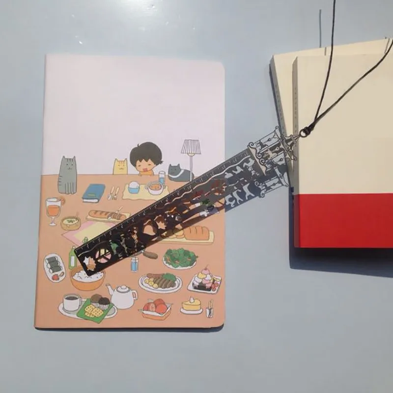 Введение продукта: очень тонкая металлическая линейка, в дополнение к линейке, вы также можете рисовать изображения, закладки, чтобы использовать легкую текстуру и тонкий полый узор, простой и прозрачный