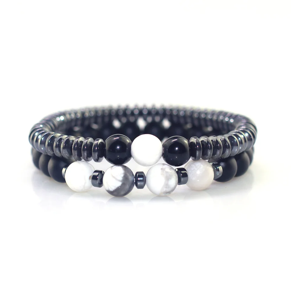 2 шт./компл. модный натуральный камень 8 мм мужские браслеты из бисера 6 мм гематит круглые пластины цепи Браслеты для Для женщин гематита браслеты