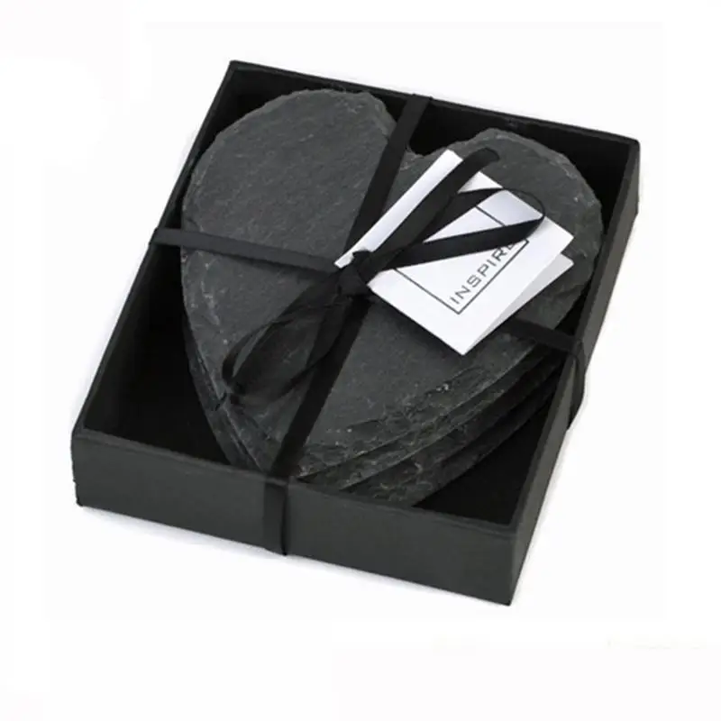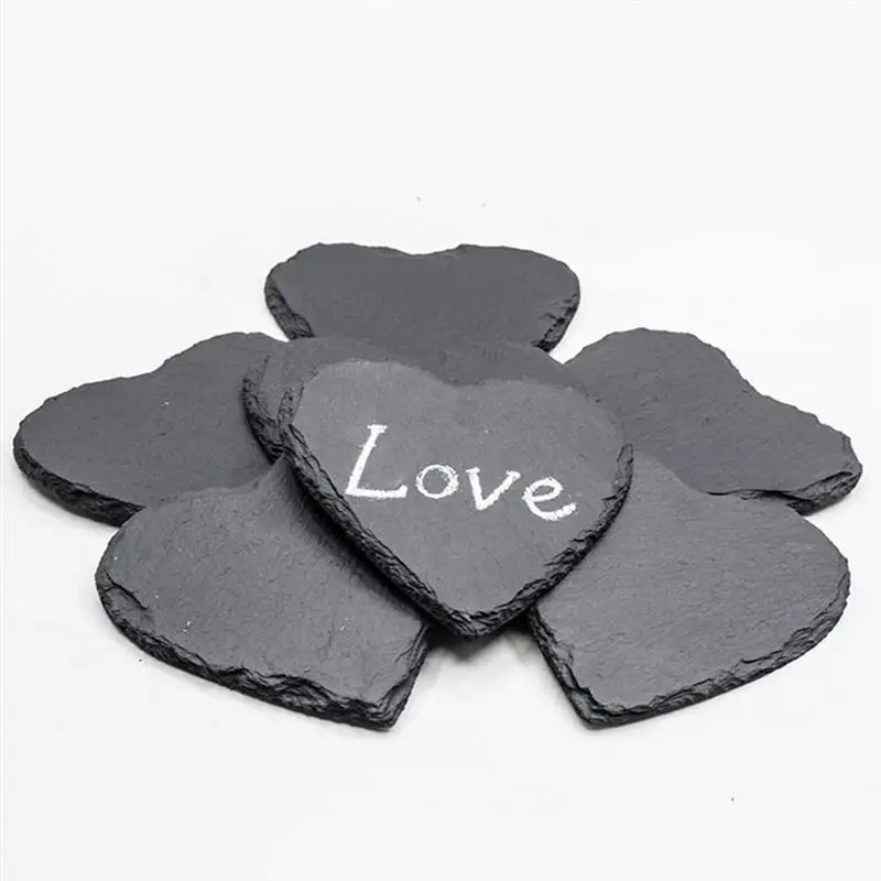 4 шт. натуральный черный практичный уникальный сердечко сланец чашки коврики для напитков