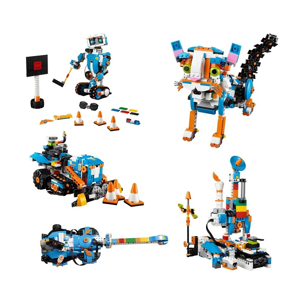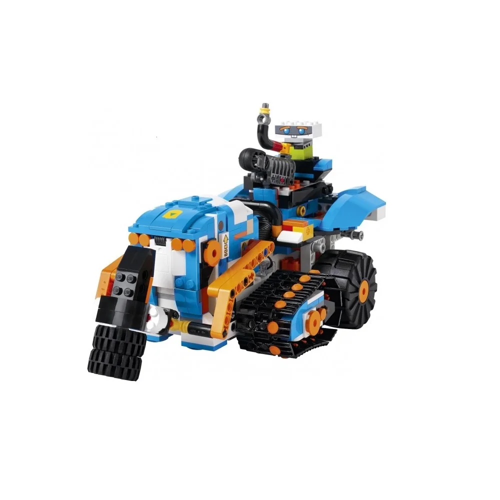 Конструктор LEGO Boost 17101 Набор для конструирования и программирования. Получи новый опыт сборки с удивительным «Набором для конструирования и программирования LEGO® BOOST». Собери и настрой Верни — своего персонального говорящего друга-робота, запрограммируй его и выполняй забавные задания при помощи входящего в набор игрового коврика. Ты можешь обратиться к Верни с вопросом, и он ответит тебе с помощью мимики, которая точно точно отражает его настроение. Верни на своих широких гусеницах может двигаться в разных направлениях, менять скорость, различать объекты и цвета, определять расстояние, захватывать и переносить предметы, жестикулировать и метать дротики из пускового устройства, установленного на плече. Кроме того, Верни чувствует удары, может реагировать на них и понимает, когда вы поднимаете его в воздух. Из деталей робота легко собрать M.T.R.4 (Многофункциональный вездеход 4), Гитару 4000, Кота Фрэнки или Автомастерскую, управлять которыми можно с планшета при помощи бесплатного приложения, включающего в себя цифровые инструкции по сборке LEGO для всех 5 моделей, а также интересные задания и идеи для вдохновения.