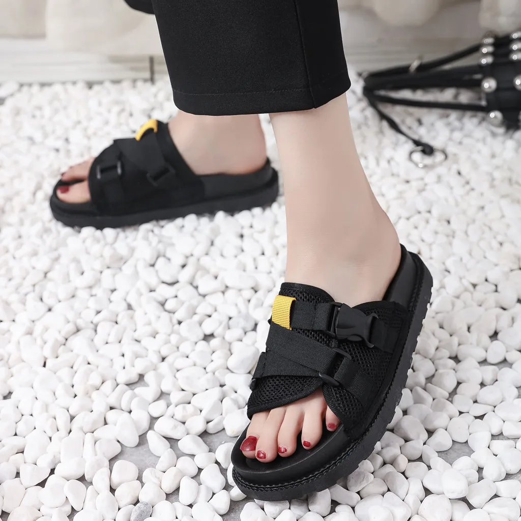 Римские домашние тапочки в стиле ретро; Мягкая Повседневная Уличная дышащая обувь на плоской платформе с открытым носком и пряжкой