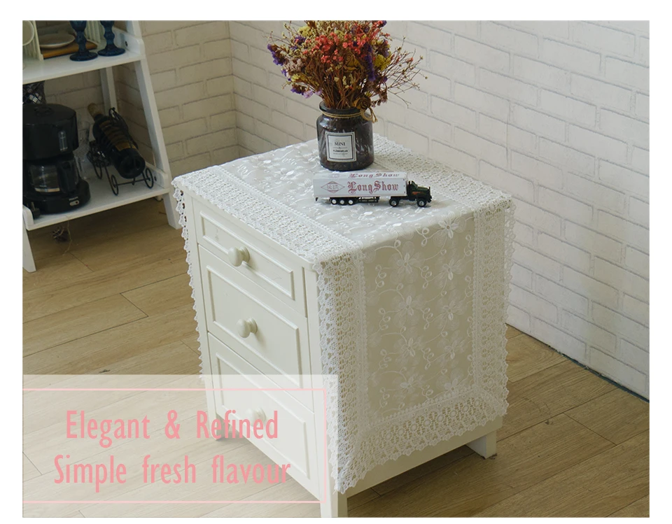 Основные характеристики этого продукта: -Смелый и креативный оригинальный дизайн -Изящная элегантность с шикарной современностью -Оденьте и Защитите свой стол/прикроватный шкаф/пианино/ТВ Стенд, также другие мебель -Идеально сочетается с другими предметами в вашем доме Параметры: -Основной материал: белая вышитая сетчатая ткань -Доступные размеры: 40x180 см -Легкий уход: ручная/машинная стирка О размере: из-за ручного измерения, пожалуйста, извините за 1-3 см погрешность (+ или-), особенно элементы с пришивной кружевной каймой. О цвете: из-за разницы в освещении и экране фактический цвет товара может немного отличаться от изображения.