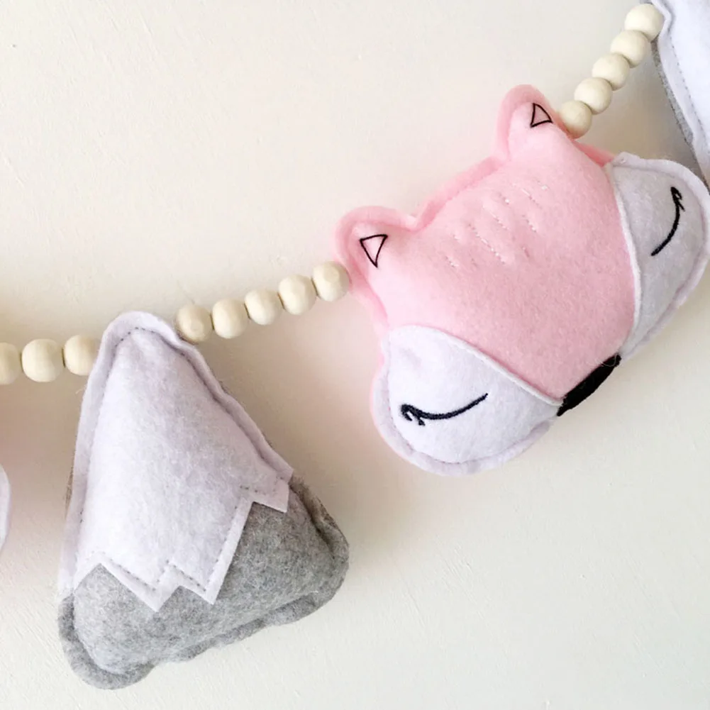Милый Лисий деревянный бисер, веревка для детской комнаты, настенный орнамент, игровой тент, подвесной Декор