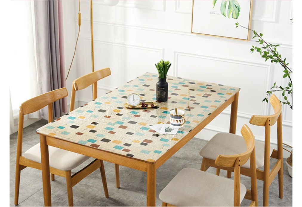 1. Мягкое стекло будет сокращаться после длительного использования, поэтому скатерть из ПВХ будет на 1-2 см больше обычного размера. 2. На поверхности скатерти имеется защитная пленка. Пожалуйста, снимите его перед использованием скатерти.