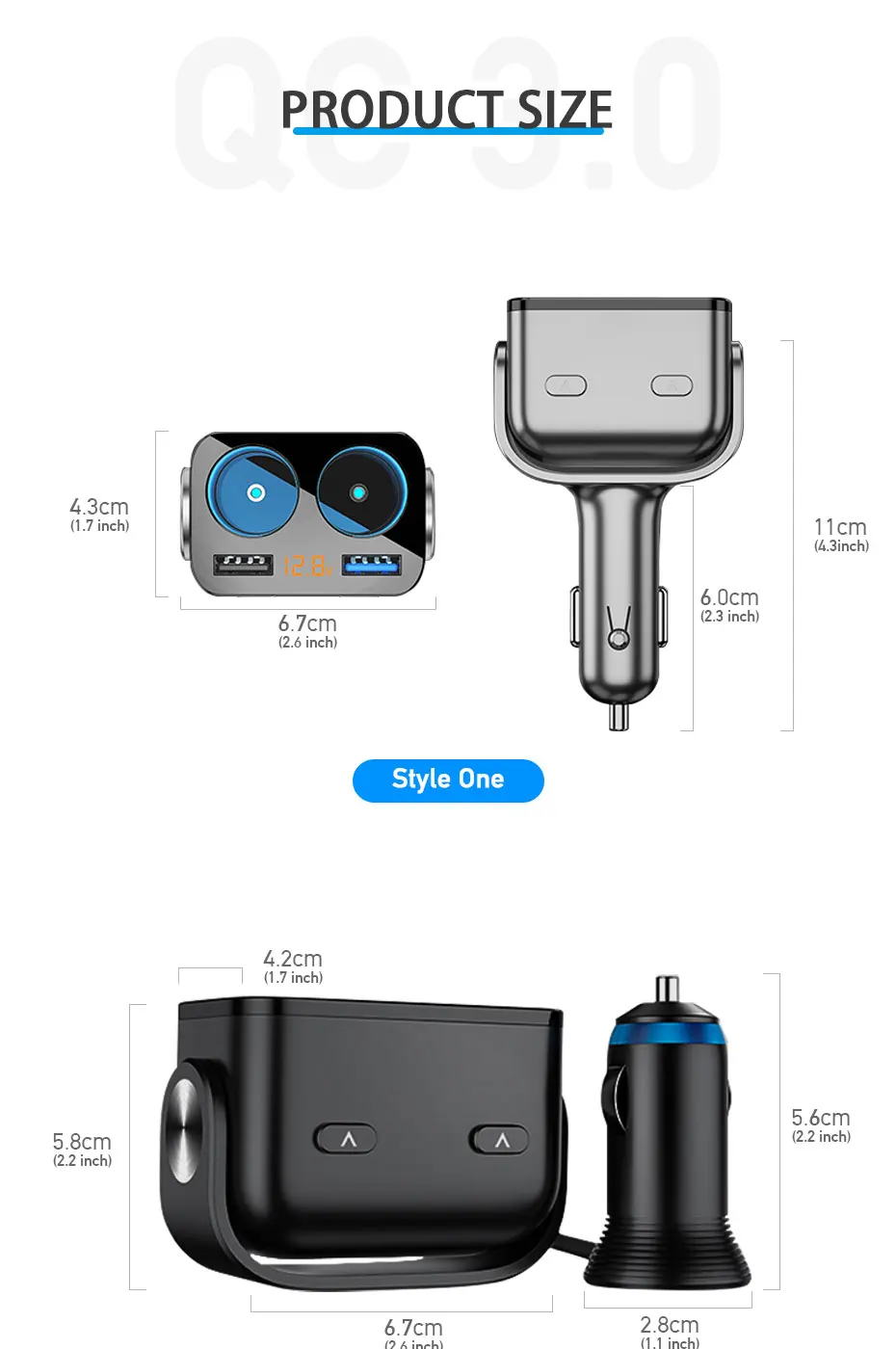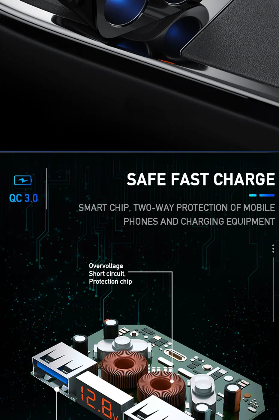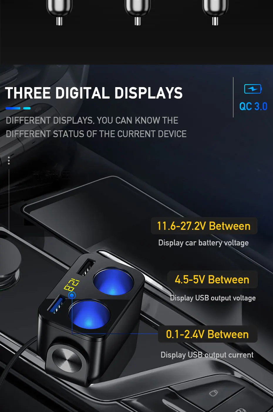 Прикуриватель сочетает в себе 2 гнезда прикуривателя с 2 usb-портом для зарядки, чтобы преобразовать прикуриватель в многофункциональный адаптер питания для одновременной зарядки нескольких устройств.