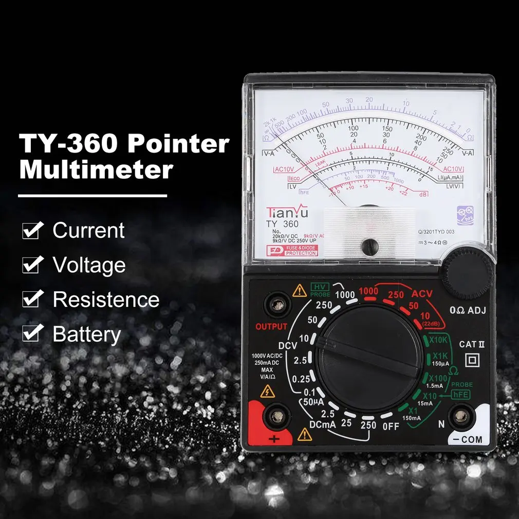 TY-360 Указатель мультиметр AC/DC Вольтметр Амперметр истинный RMS диод ом тестер сопротивления удержания данных аналоговый w тестирование свинца