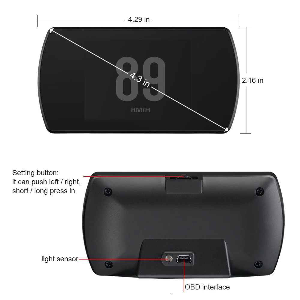P12 автомобильный HUD соединяет интерфейс OBD2 с помощью кабеля OBD и отображает данные о вождении, например, скорость транспортного средства, об/мин двигателя, температуру воды, расход топлива и т. д. он может держать глаза водителя всегда на дороге, чтобы избежать опасности опускания головы, чтобы прочитать приборную панель.