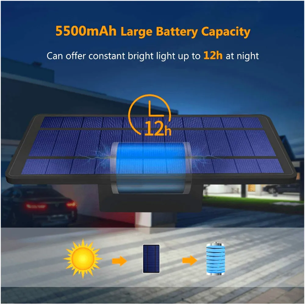 Параметры: Панель солнечной батареи: 5,5 V 3,5 W ПЭТ ламинированные панели Батарея: литиевая Батарея 3,2 V/5500 мА · ч (входит в комплект) Световой поток: 800Lm Спецификация светодиода: SMD2835 (28 лм) * 48 шт. Цветовая температура: белый, теплый белый Выходная мощность: 3,2 V 3,8 W Площадь освещения: 40 квадратных Режим работы: всегда горит Время зарядки: 6 ~ 8 часов Время освещения: >10 часов Материал: АБС-пластик + поликарбонат + защита от ультрафиолета Водонепроницаемый: IP65 Рабочая температура: -20 градусов ~ + 60 градусов Высота установки: 3.0plusmn0.5M ( 9.84plusmn1.64 футов) Подходящие места: наружные ворота, стены, дороги, внутренний двор, коридор, кемпинг. Функция: когда Включите переключатель, он будет автоматически заряжать днем и работать ночью, всегда режим освещения 2. Руководство по использованию A. Просверлите отверстие на стене и поместите расширительный гвоздь в Б. Используйте винт, чтобы установить солнечный светильник на стене C. Установите его там, где он может поглощать солнечный свет, а затем включите переключатель Совет: время работы солнечной лампы полностью зависит от интенсивности солнечных лучей и времени облучения, положения установки, времени солнечного освещения должно быть более 5 часов, лучшее время освещения-от 10 до 16 вечера. Полезные советы: После установки линия, соединяющая солнечную панель с панелью лампы, должна быть на одной стороне.
