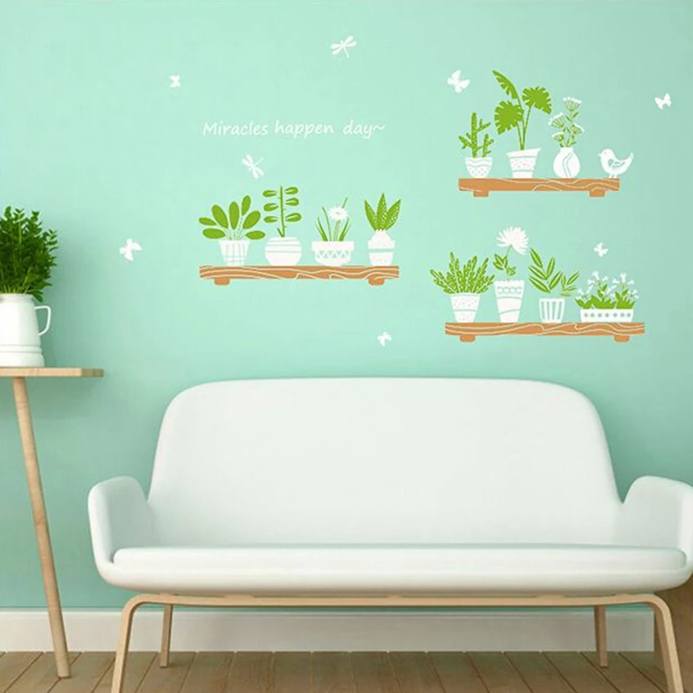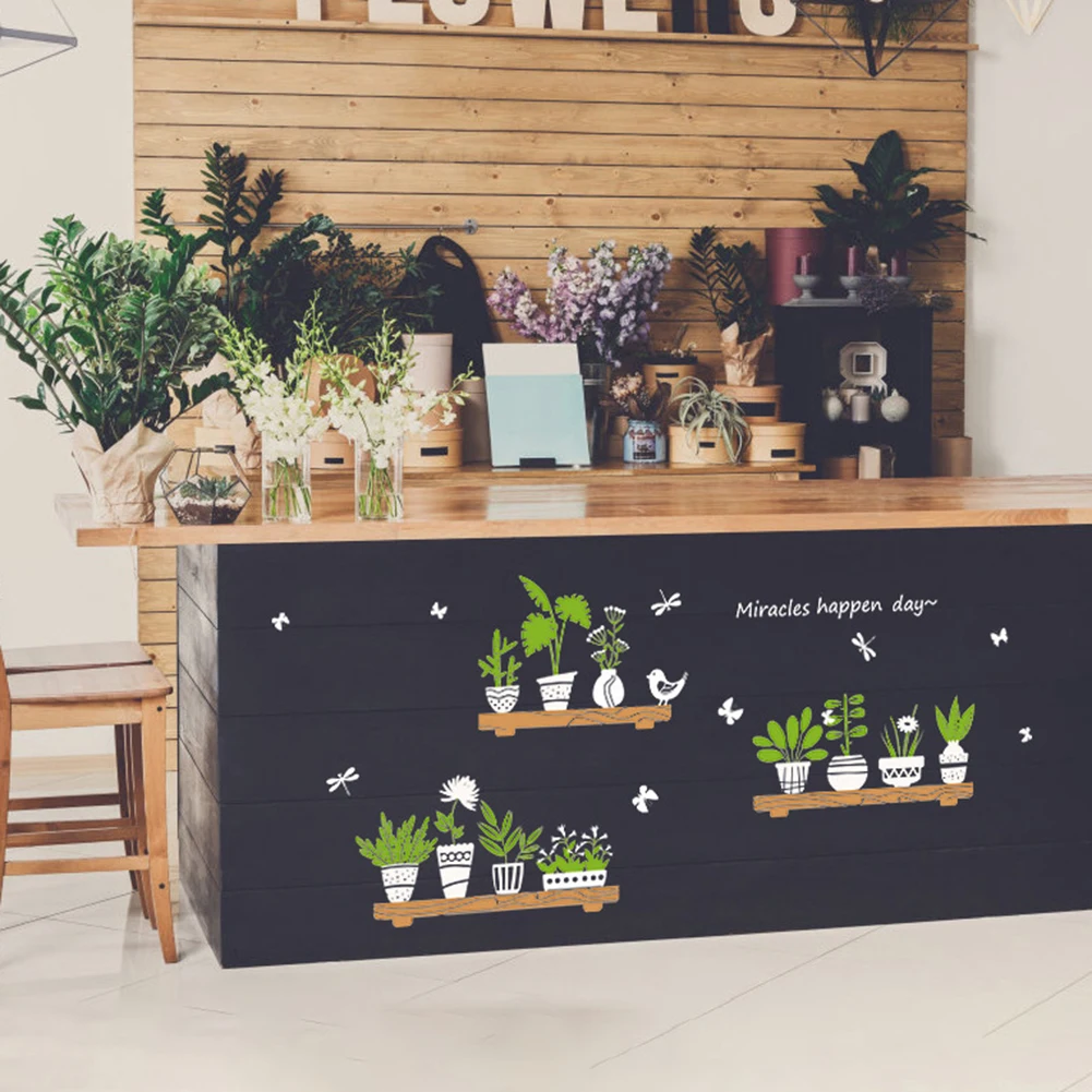 Свежие бонсай Стикеры для растений на стену кофе стеклянное окно в магазине настенные наклейки художественный Декор
