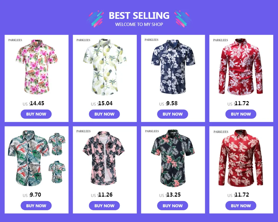 1. Тип товара:Летняя Гавайская пляжная рубашка с коротким рукавом