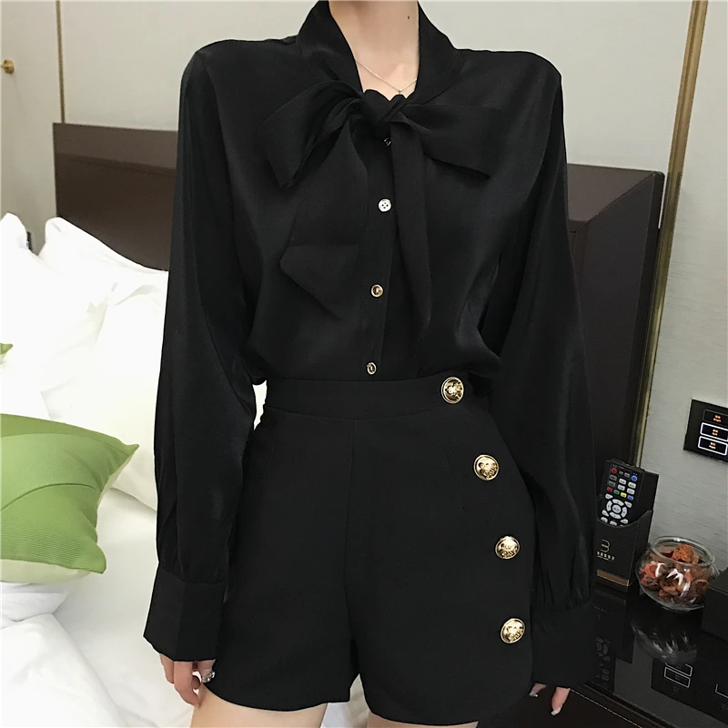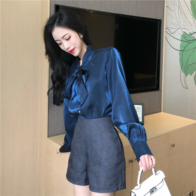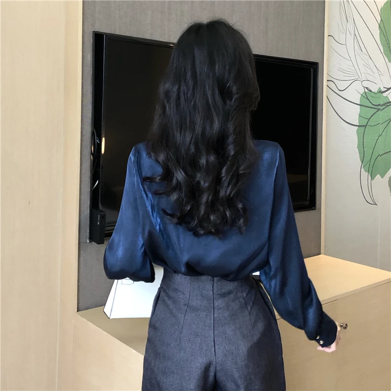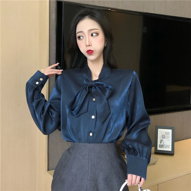 Платье с длинным рукавом с Винтаж пояса пикантные Клубные блузки Длинные атласные Винтаж Осенняя блузка Для женщин однотонные красные Клубные Blusa Mujer новинка