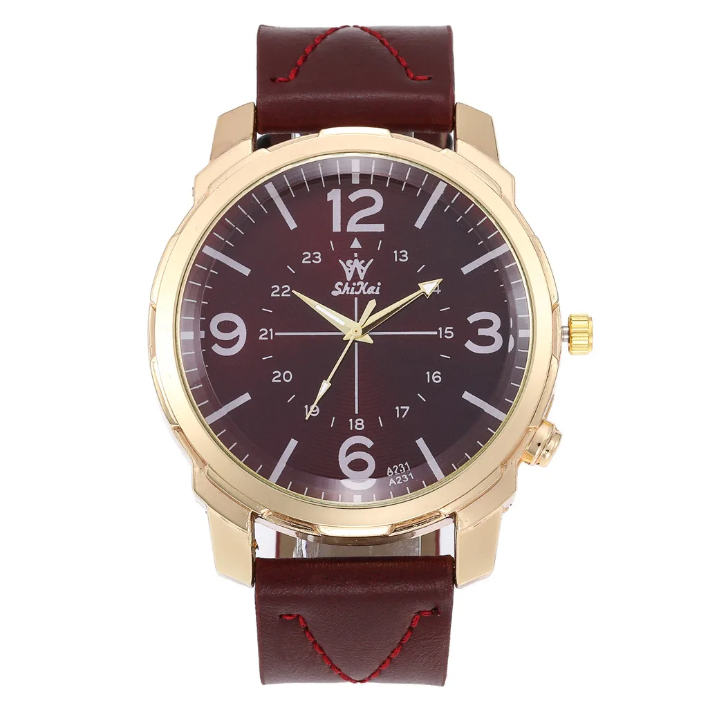 Роскошные Мужские деловые часы с большим циферблатом, новые модные кварцевые часы с кожаным ремешком, креативные часы Wd3