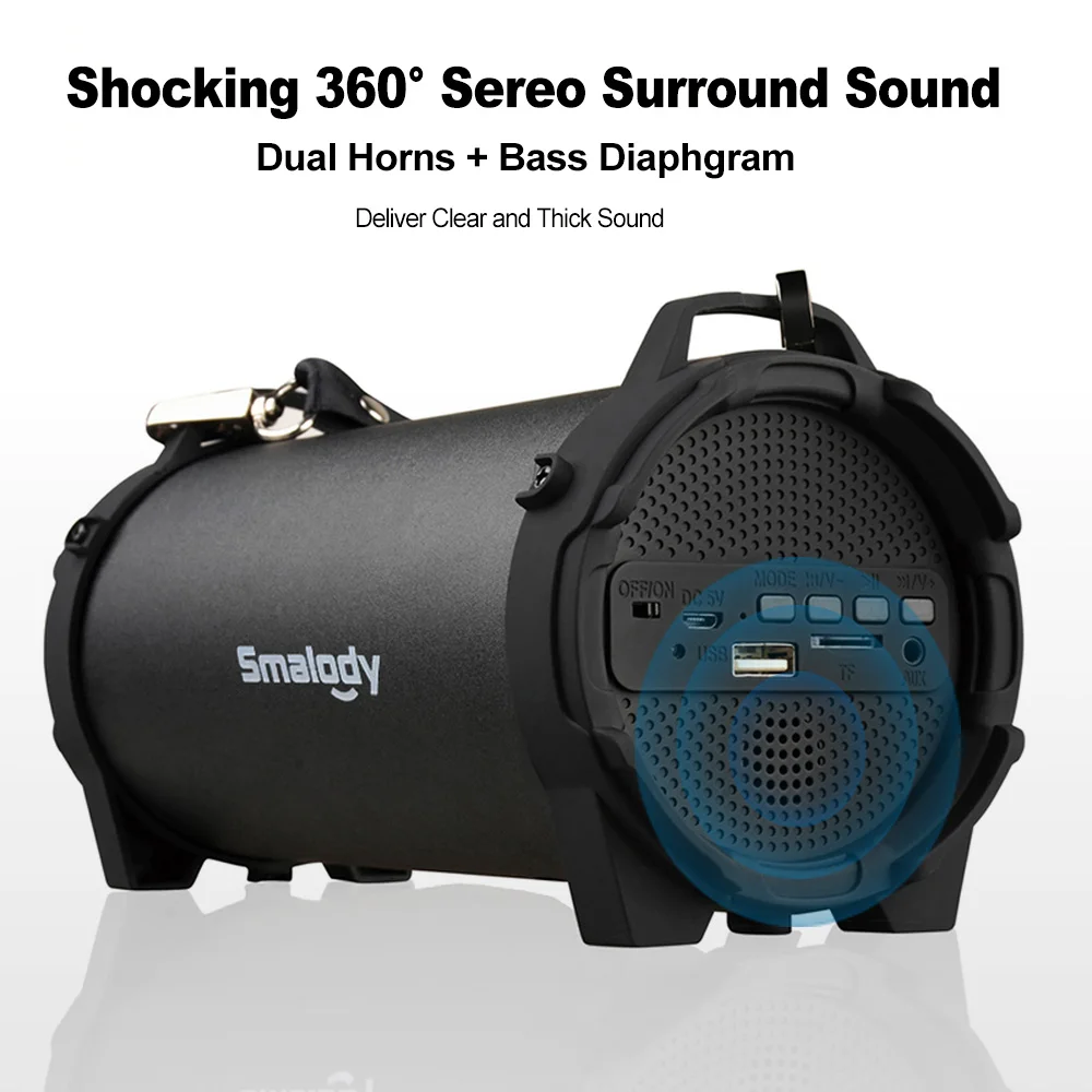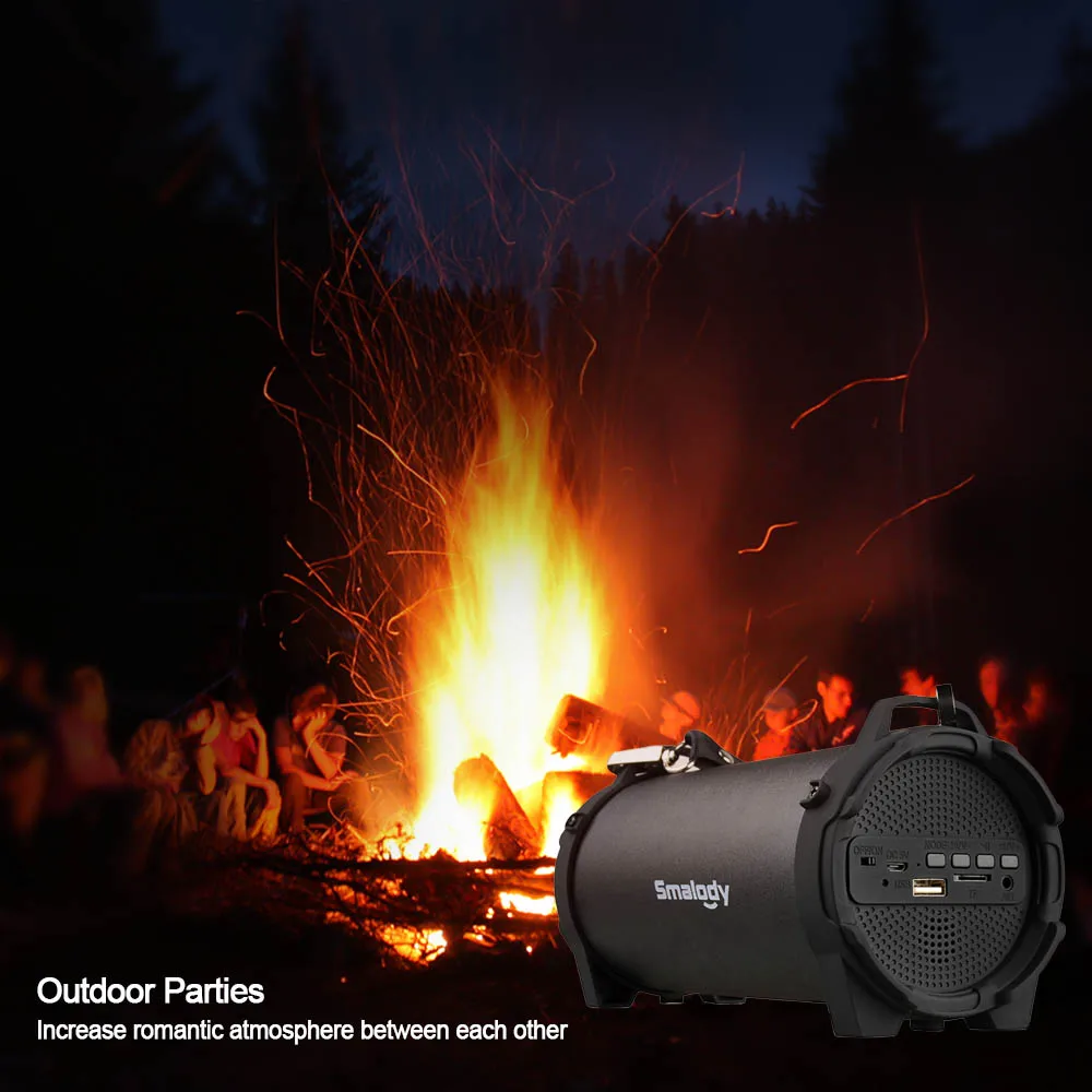 Smalody SL-10-это высококачественный уличный динамик BT с цилиндрическим внешним видом и мощным звуком. Он поддерживает fm-радио, tf-карту, U dirve и 3,5 мм AUX в воспроизведении музыки; С микрофоном, вы можете наслаждаться громкой связью.