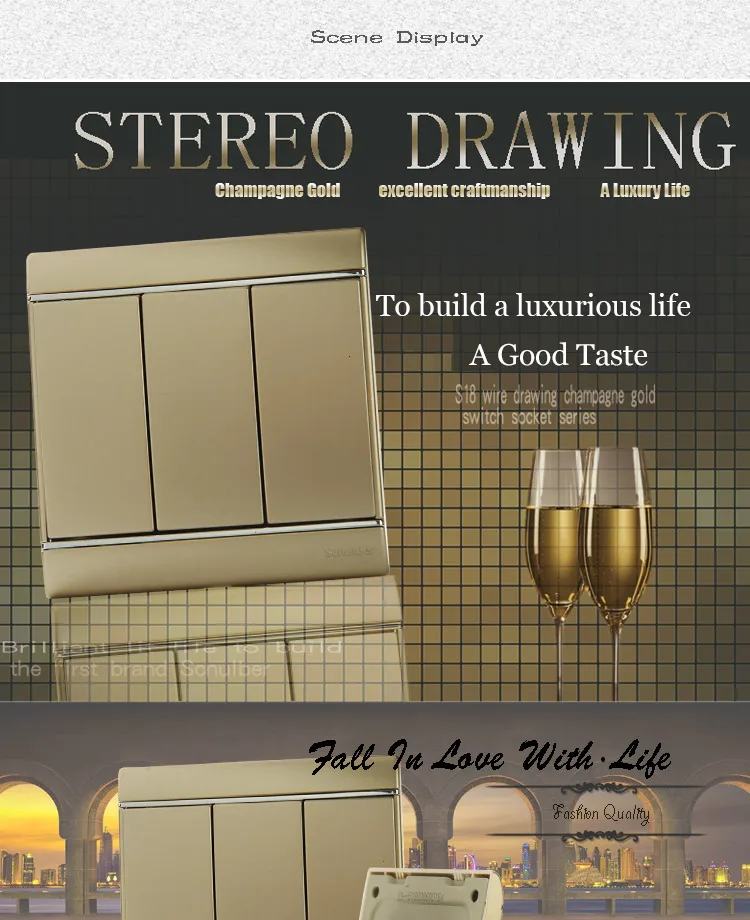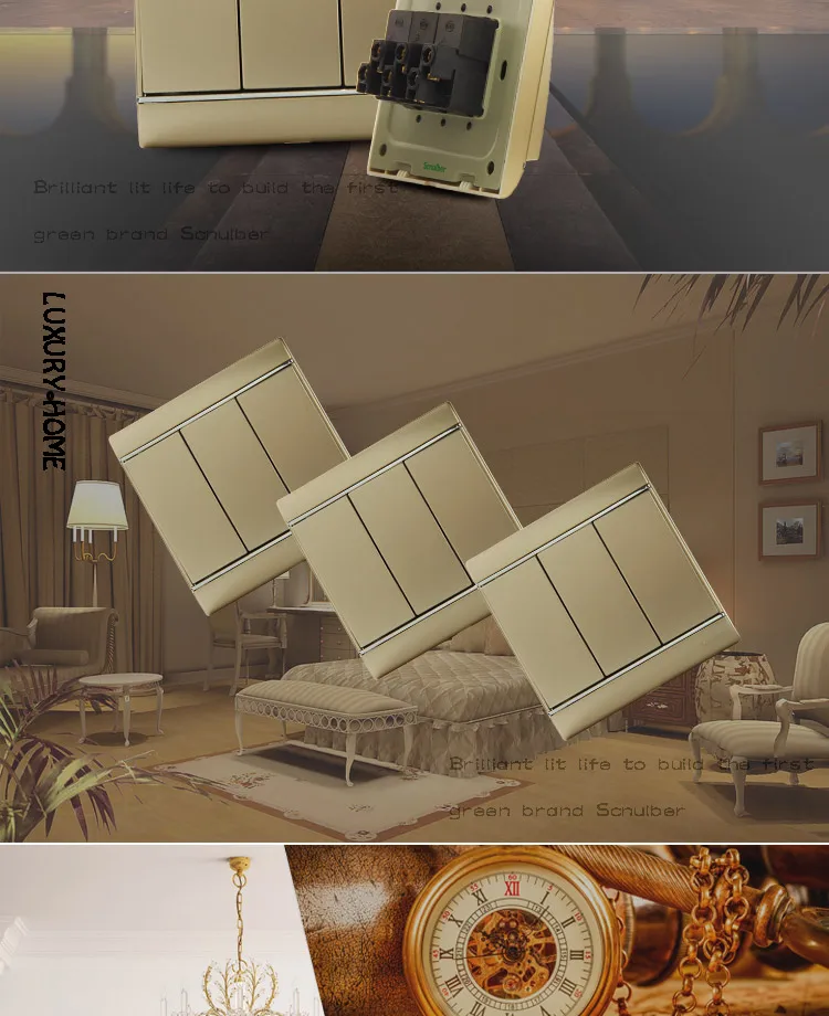 86x86 16A домашняя лампа кнопка с фиксацией роскошного шампанского 3 банды 2 способа Электрическая настенный переключатель панель
