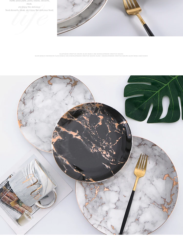 Европейский стиль, мраморные плиты, керамический столовый набор, Золотая инкрустация, фарфоровая десертная тарелка, стейк, салат, закуски, тарелки для торта, посуда
