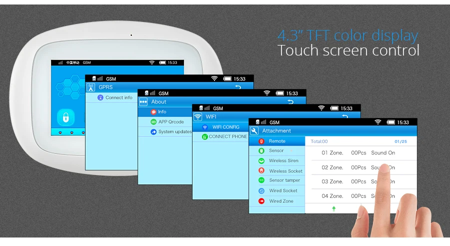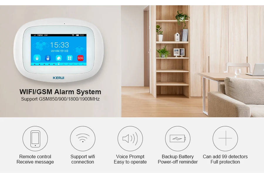 О: эта панель gsm и wifi, даже без wifi, если у вас есть sim-карта с панелью, она все равно отправит вам сообщение или позвоните вам.