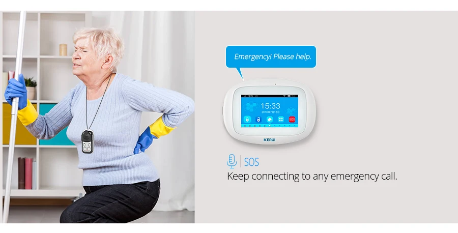 Забота о наших пожилых клиентах. Режим медицинского оповещения в наших системах безопасности домашней сигнализации отправит уведомление пользователю даже в условиях диспута, который может быть хорошо защищен пожилым и детям. Пользователь также может записывать запись SOS заранее, когда старший нажимает кнопку SOS, система вызовет вас и воспроизводит запись, чтобы сообщить Вам о чрезвычайной ситуации.