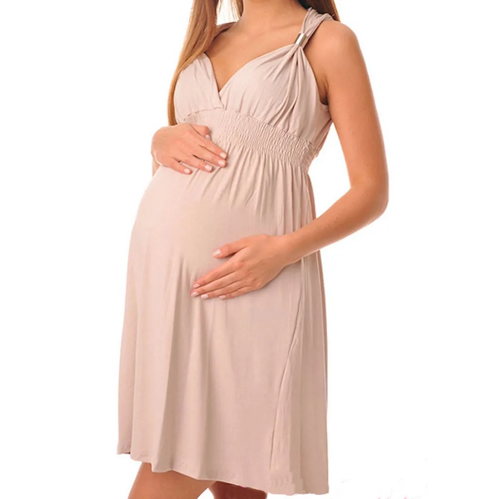 Сексуальное платье для беременных, модное однотонное платье без рукавов с v-образным вырезом и лямкой на шее для беременных