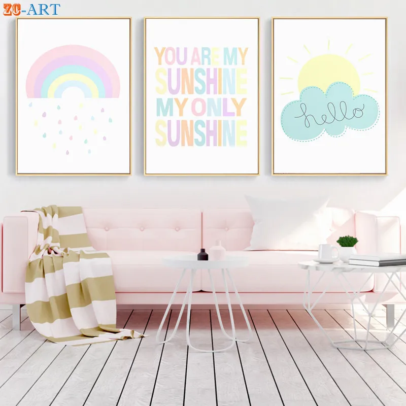 Радуга облако солнце печать Пастель Цвет детской стены искусства девушки комнаты украшения фотографии настенные декорации