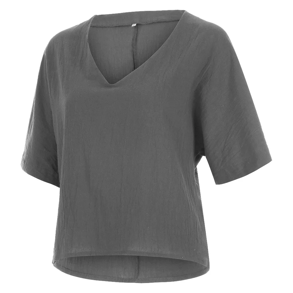 Новая женская модная блуза с v-образным вырезом, летние повседневные футболки с коротким рукавом