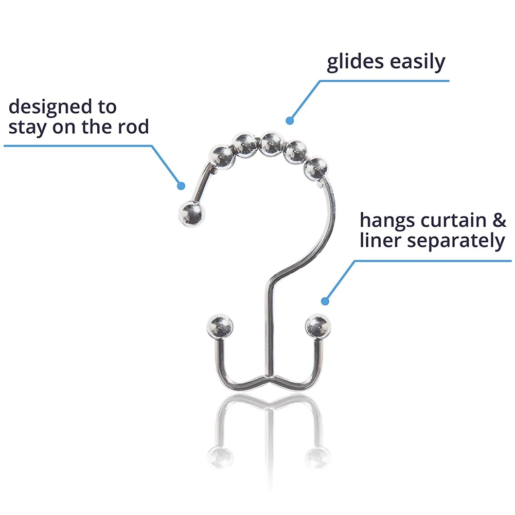 -- 12 крючков для установки душевой занавески. Протрите влажной тканью для легкой очистки.