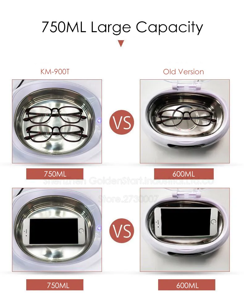 Название: ультразвуковой очиститель Модель: KM-900T/KM-900S Частота: 42 кГц Напряжение: 220-240 В, 50 Гц Внешний размер: 206*175*147 мм Внутренний размер: 150*130*50 мм Емкость: 750 мл Материал: нержавеющая сталь SUS304