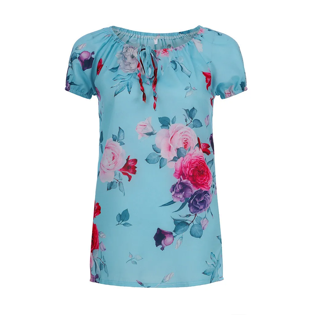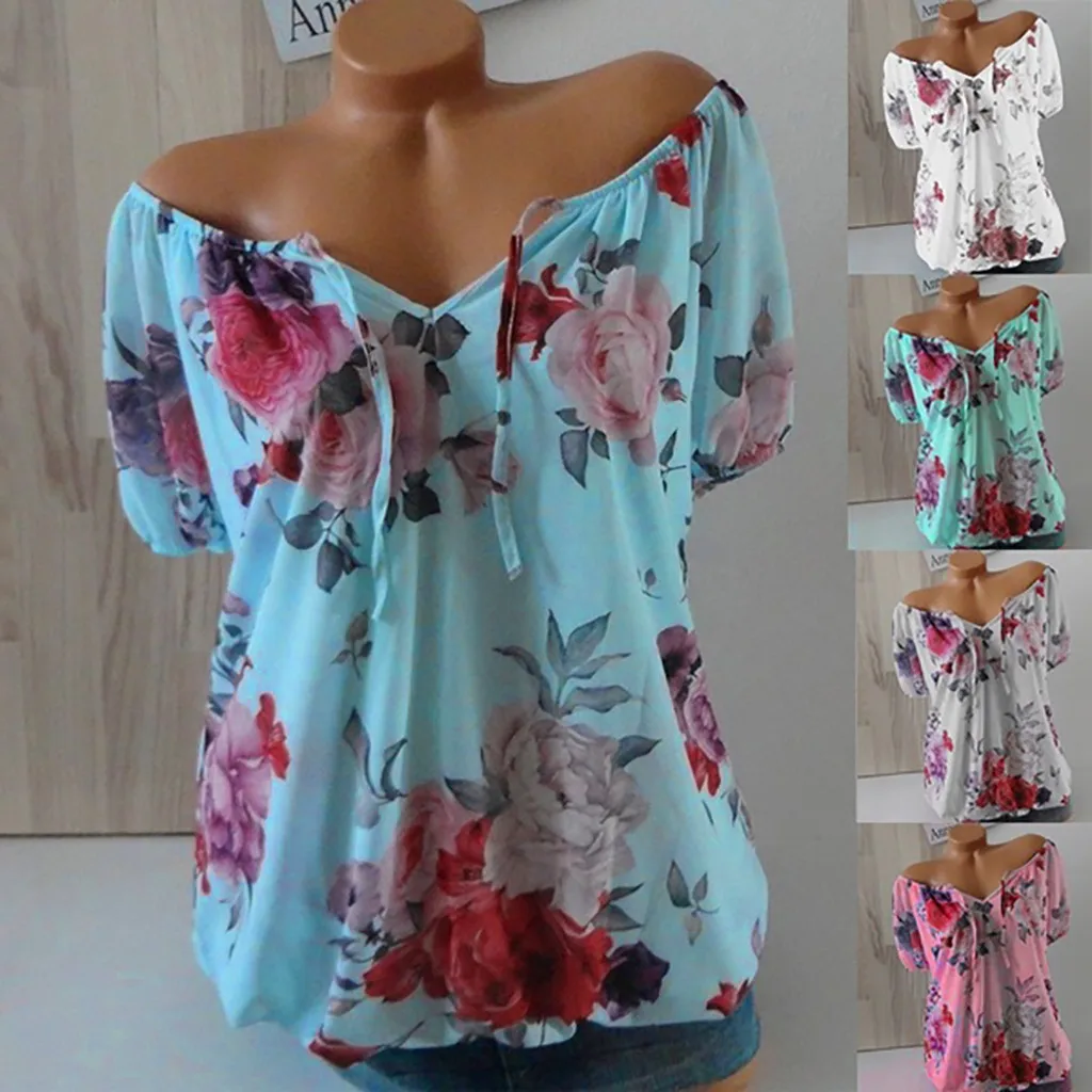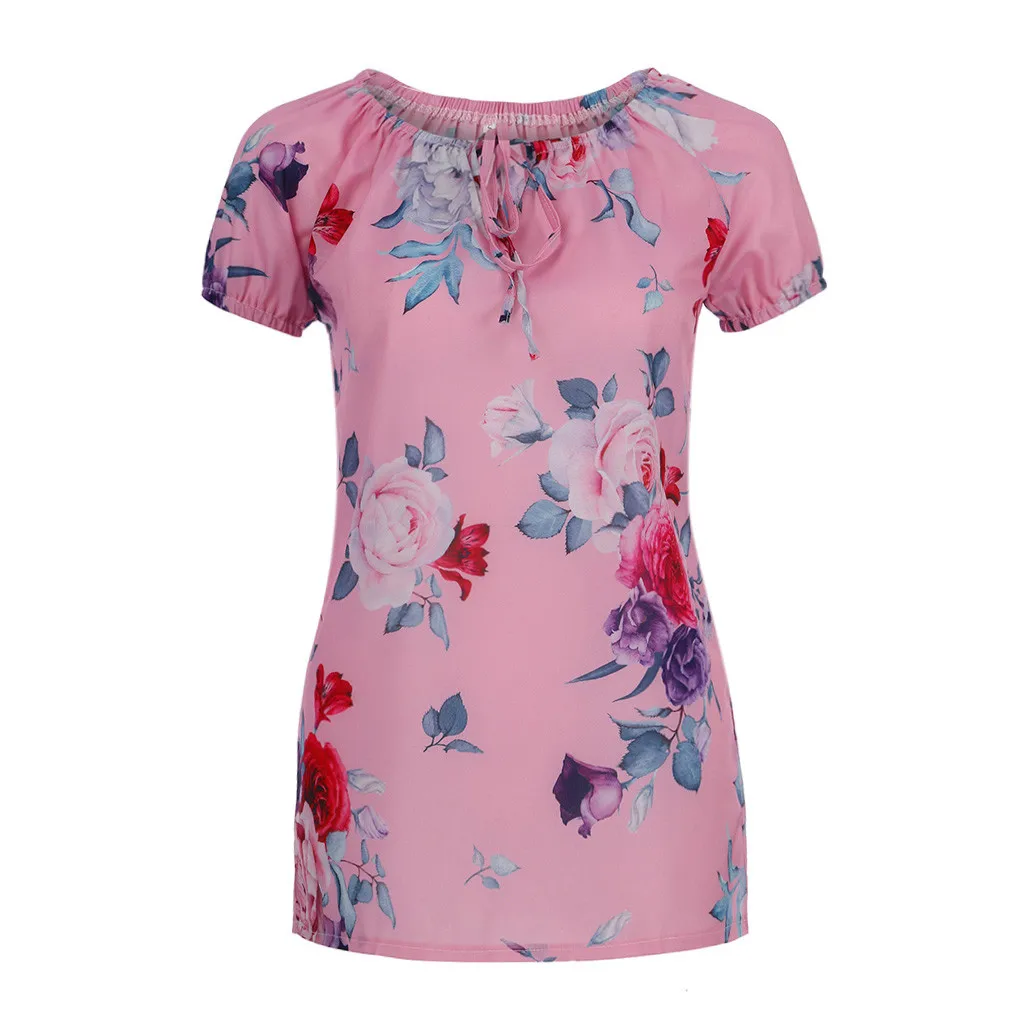 Женщины плюс размер свободные печати o-образным вырезом с коротким рукавом Блузка пуловер Топы рубашка
