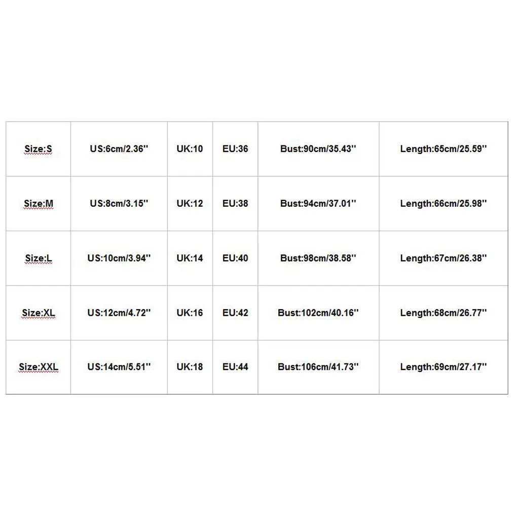 Размер Свяжитесь с нами Великобритания ЕС Обхват груди Длина S 6 см/2,36'' 10 36 90 см/35,43'' 65 см/25,59'' М 8 см/3,15'' 12 38 94 см/37,01'' 66 см/25,98'' L Высота каблука 10 см/3,94'' 14 40 98 см/38,58'' 67 см/26,38'' XL 12 см/4,72'' 16 42 102 см/40,16'' 68 см/26,77'' XXL 14 см/5,51'' 18 44 106 см/41,73'' 69 см/27,17''