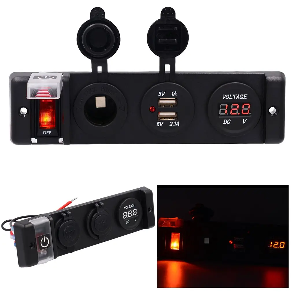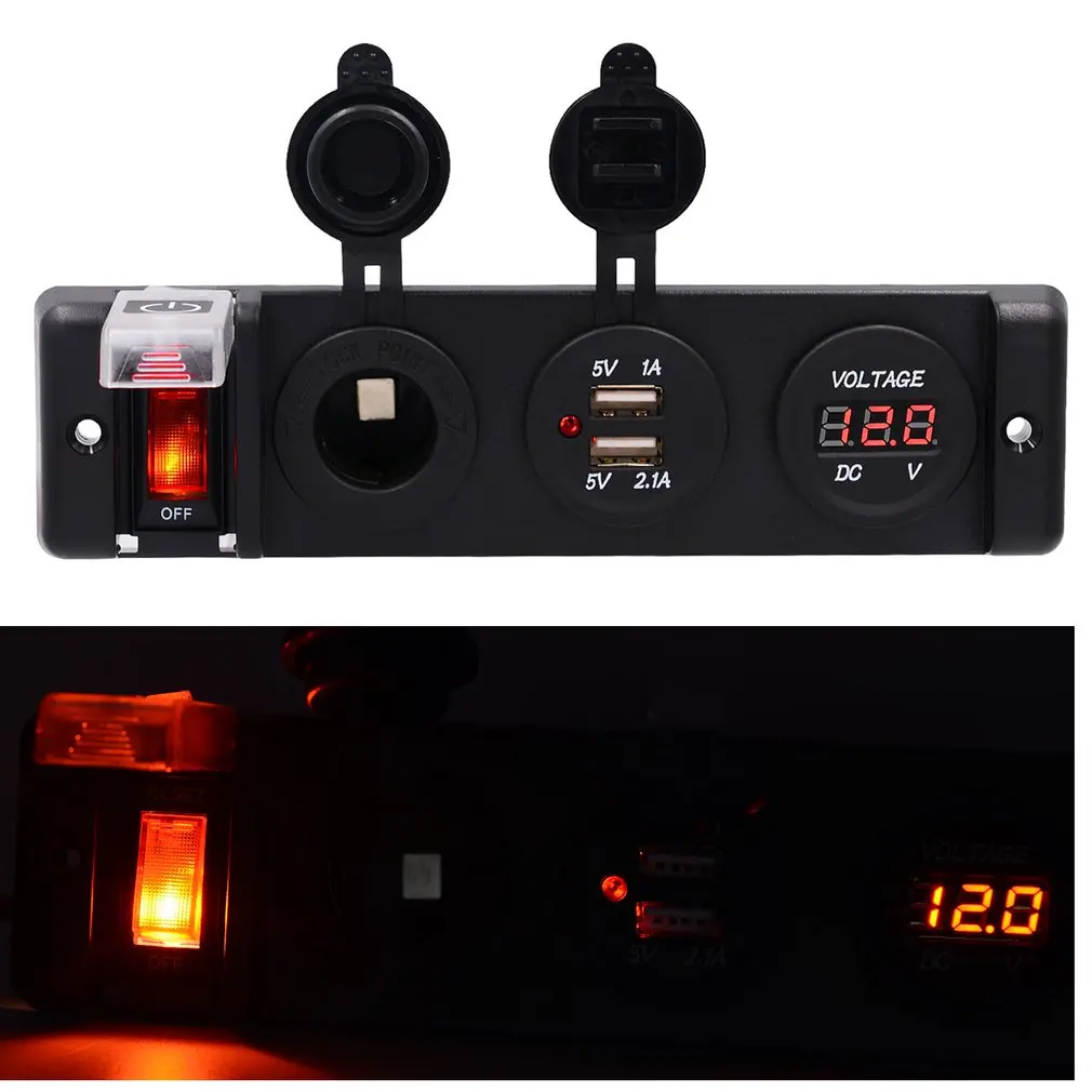 НовинкаВодонепроницаемый Автомобильный Rv автомобильный и мотоциклетный модифицированный автомобильный зарядный прикуриватель с двойным usb-переключателемЗарядное устройство