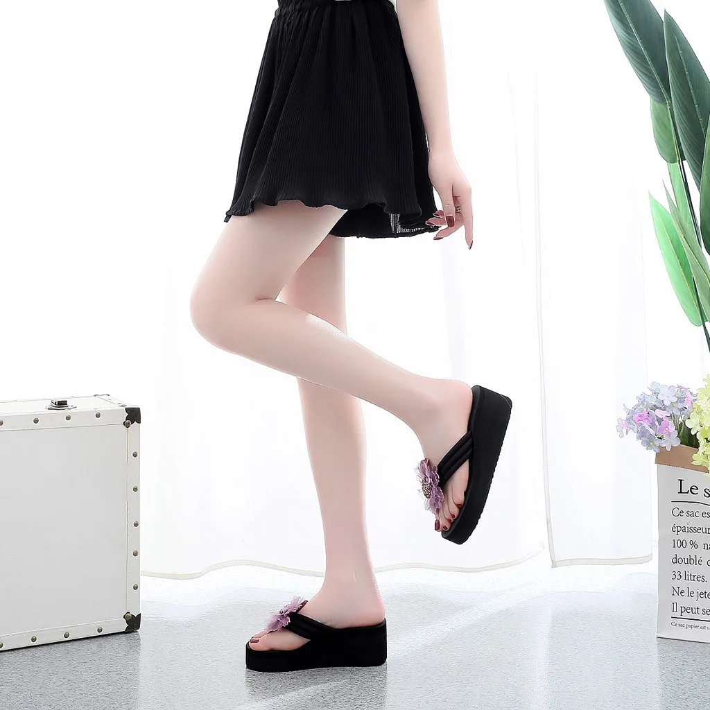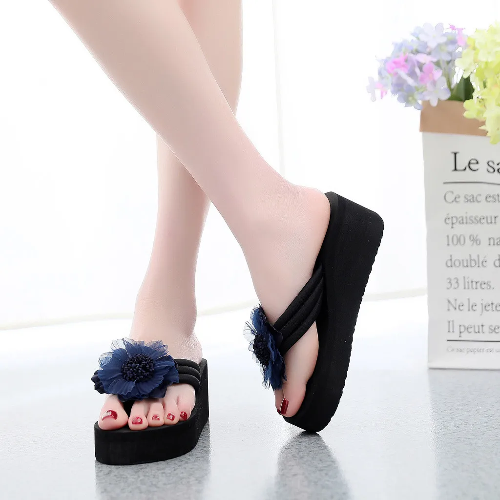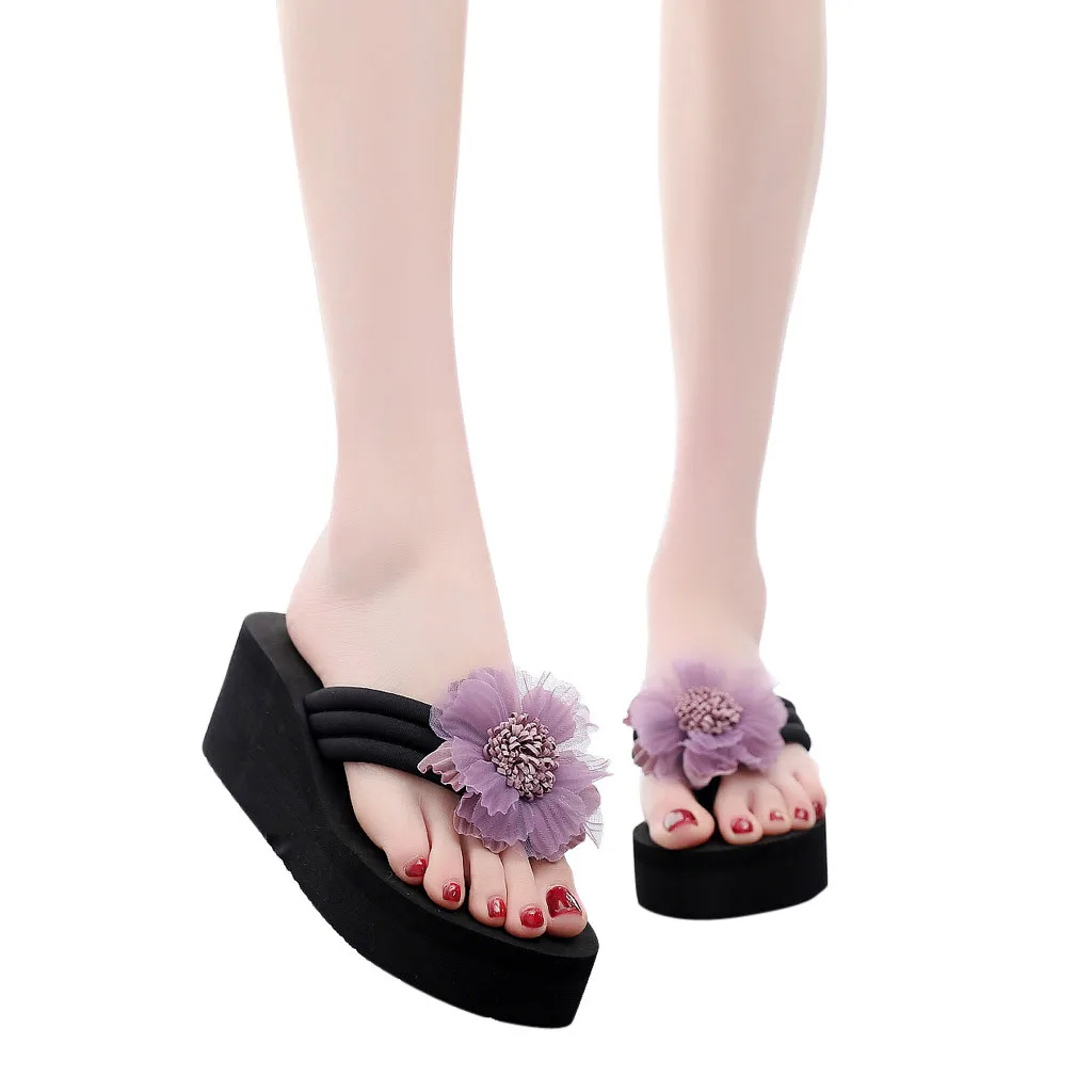 Для женщинВьетнамки на высоком каблуке; Туфли на танкетке с толстыми ножками; Классические туфли с цветочным узором и бусинамиДомашняя пляжная обувь на танкетке с цветочным рисункомТапочки
