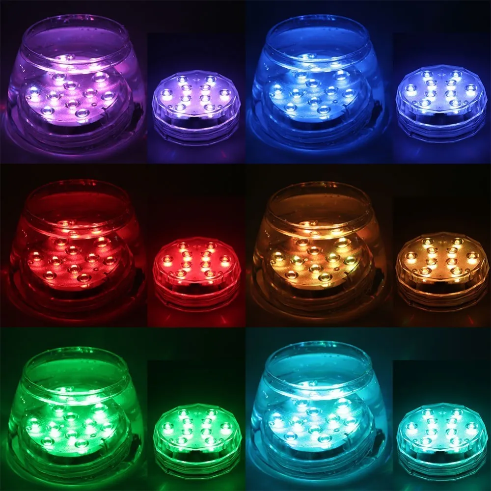 2. Многоразовый погружной светодиодный свет, супер яркий 10 LED Встроенный, водонепроницаемый и беспроводной, идеально подходит для праздника или домашнего украшения, как освещение вазы, миски, или любые заполненные контейнеры воды. -Может превратить расточную чашу в красивый и захватывающий центральный элемент, часто используются для дизайна событий.