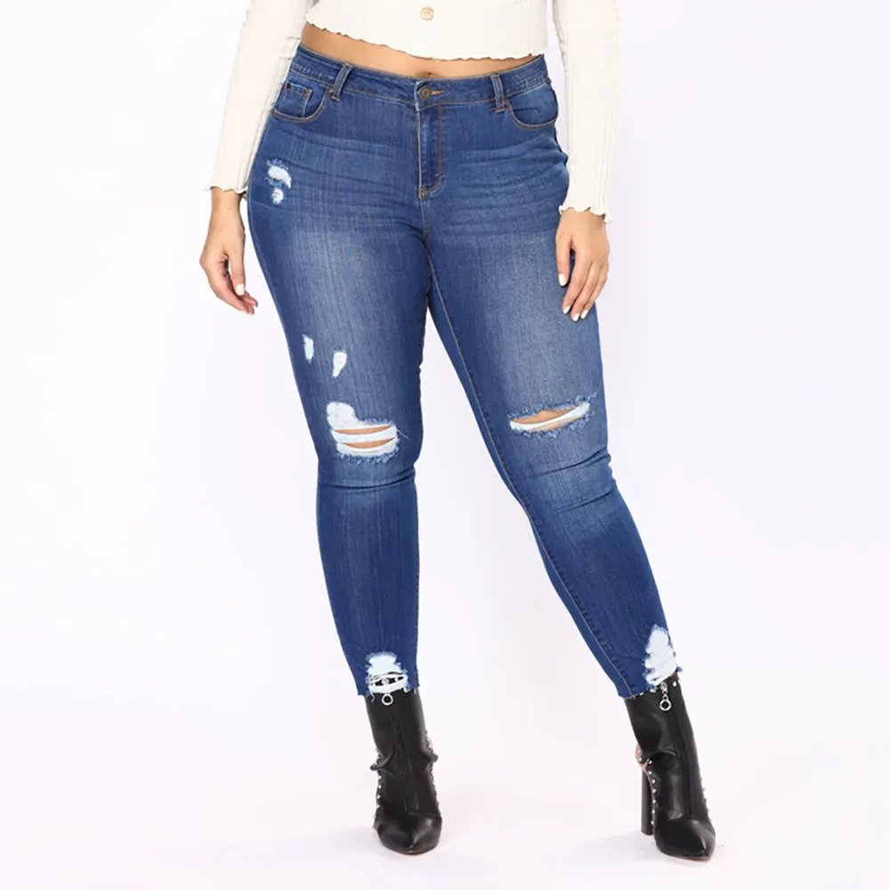 Женские тонкие плюс размер рваные градиентные длинные джинсы джинсовые обычные брюки