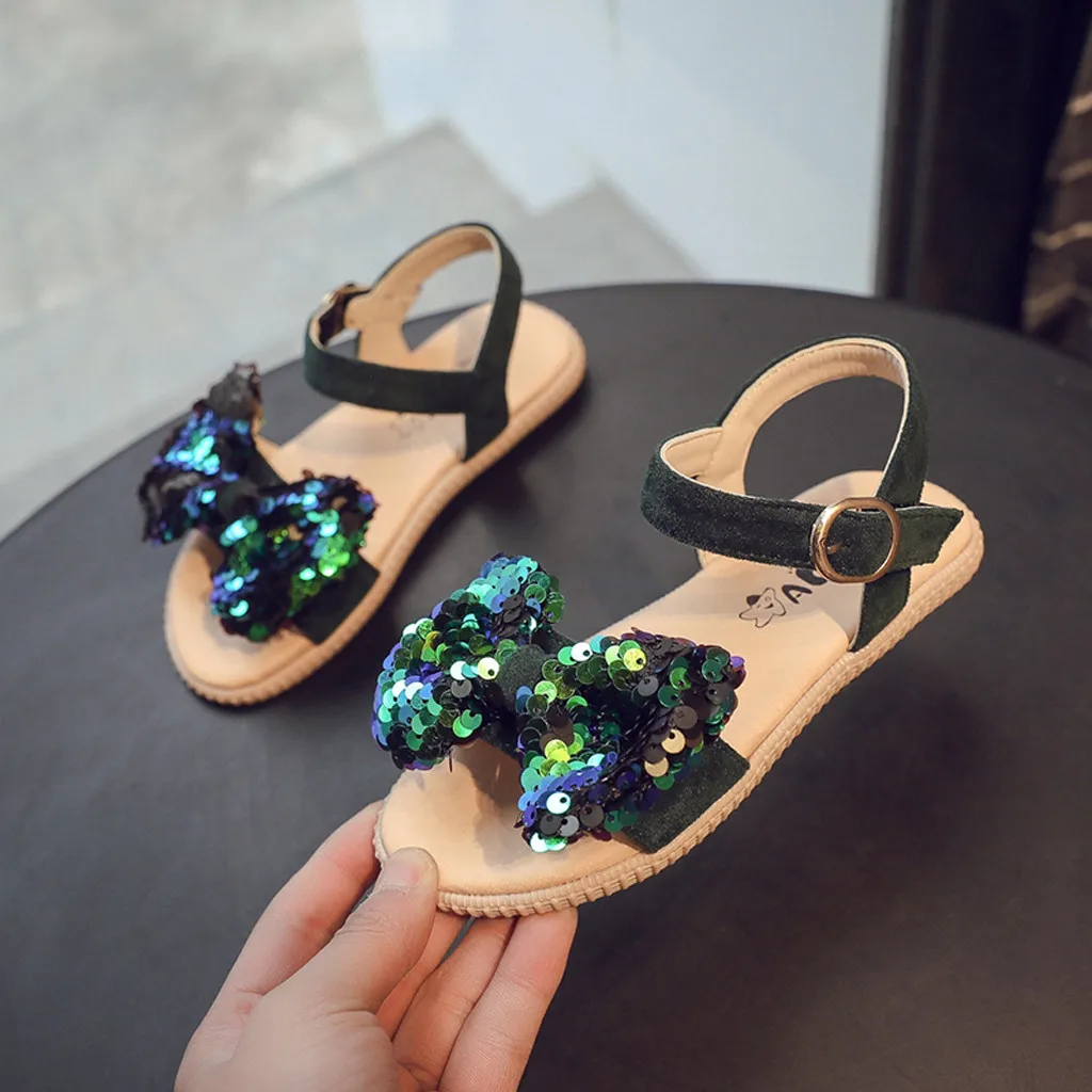 Детские сандалии для девочек; Корейская версия; дышащая повседневная обувь принцессы с блестками