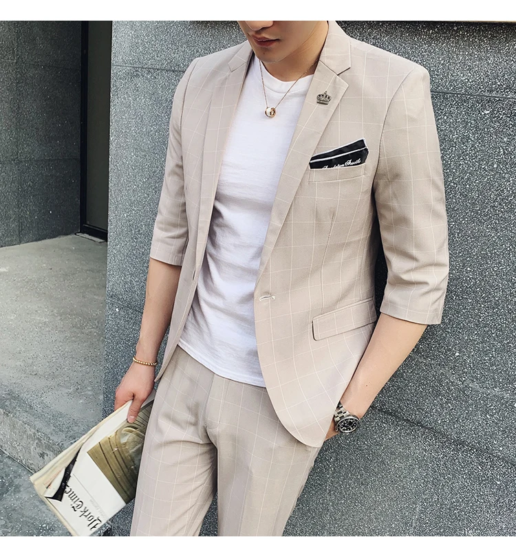 Мужские костюмы со штанами на весну и лето 2019, свадебные костюмы для мужчин, костюм для мужчин смокинг, Классические мужские облегающие зеленые костюмы в клетку
