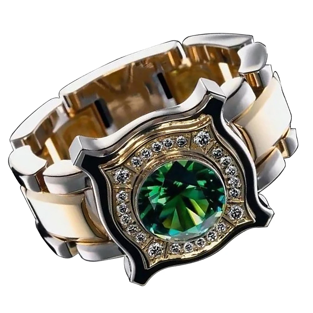 Модная мужская круглая огранка с искусственными изумрудами и стразами, кольцо для помолвки, ювелирное изделие, подарок