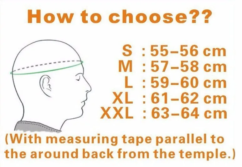 A1:Наш размер шлемаАзиатский размер, Это о2-3 размераБольше, чем размер США, Великобритании, Австралии, ЕС. Поэтому я предлагаю вам сообщить мне данные вашего тела, тогда мы рекомендуем вам правильный размер.