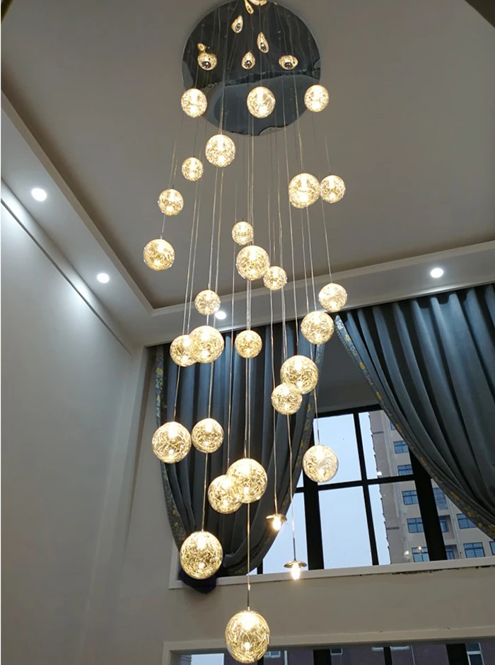 Материал: полировка хромированного железа со стеклянным шариком и абажуром Размер: 1 светильник диаметром 15 см * в 100 см 3 светильника диаметром 25 см * 100 см 6 лампочек диаметром 30 см * в 150 см 9 лампочек диаметром 40 см * 200 см 12 светильников диаметром 45 см * 200 см 15 светильников диаметром 60 см * Высота 250 см 19 ламп диаметром 80 см * h300 см 24 лампочки диаметром 80 см * H400 см Напряжение: 110-240 В (в соответствии со стандартным напряжением стран покупателей)