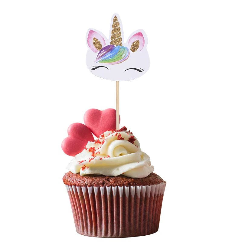 24 шт./компл. мультфильм единорог Радуга кекс Топпер Милая вставка для торта карты Флаги дети День рождения Свадьба поставка украшения