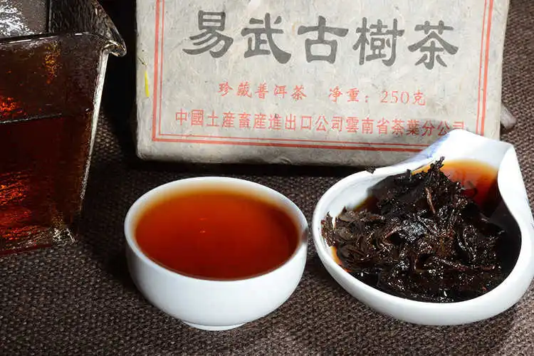 Китайский YiWu старинное дерево приготовленный pu er чай кирпич 250 г