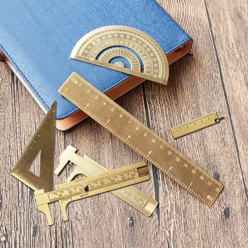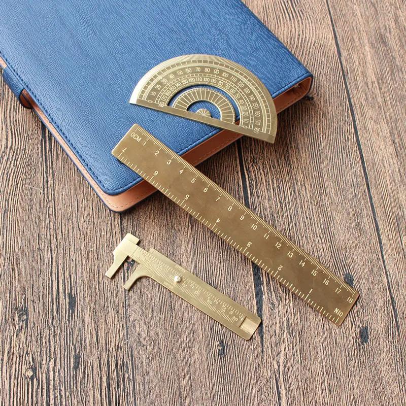 1 шт. винтажная латунная линейка инструменты металлическая медная линейка транспортир ученическая линейка для рисования скользящая линейка манометр школьные измерительные инструменты