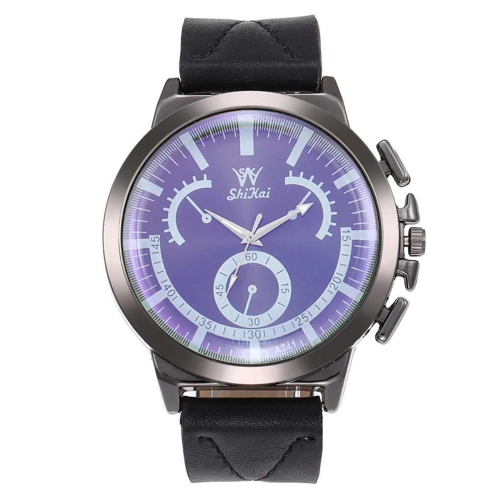 Роскошные Мужские часы, бизнес большой циферблат, модные кварцевые часы с кожаным ремешком, высококачественные креативные часы Wd3