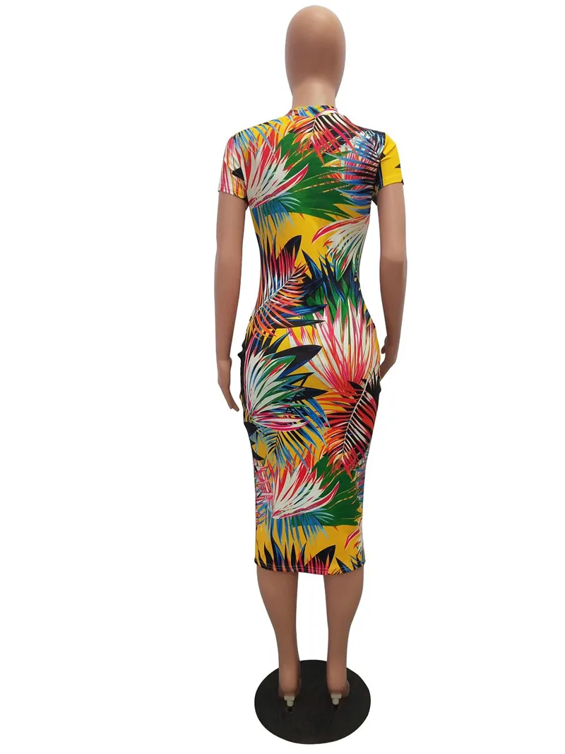 Женское платье миди с принтом в виде листьев Adogirl, повседневное облегающее платье с рукавами-крылышками и завязками спереди, клубная одежда