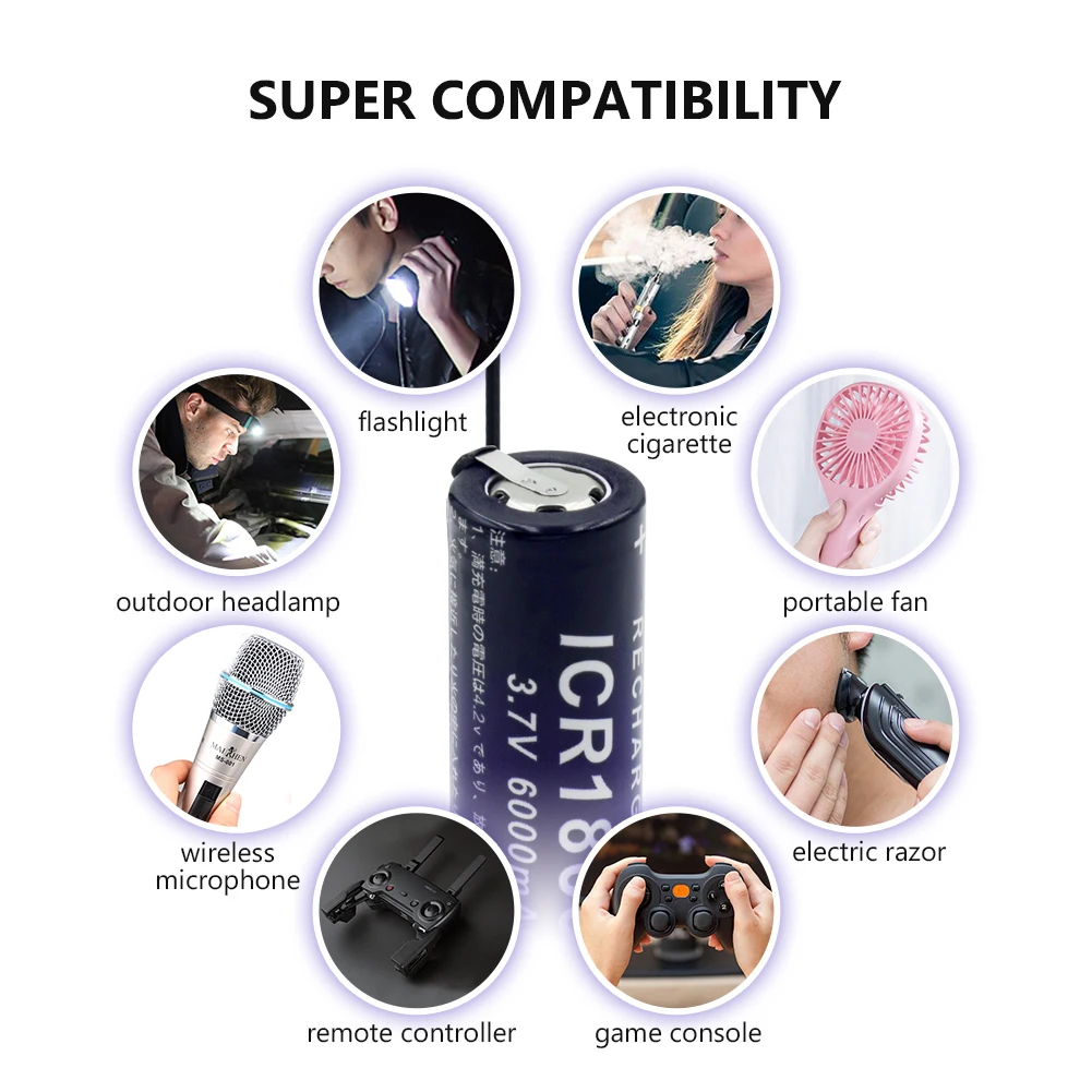 Широко используется на факеле, блоке питания, микрофоне, радио, геймпаде, лазерной указке, фонарике, налобном фонаре, светодиодном освещении, видео дверном звонке, камере, игрушке, пульте дистанционного управления, мини-вентиляторе, портативном принтере, аварийный свет, интерфон, портативный DVD, ноутбук, инструмент, аудио оборудование, Воздушная модель, И других электронных устройств, которые нуждаются в 18650 ячейках.