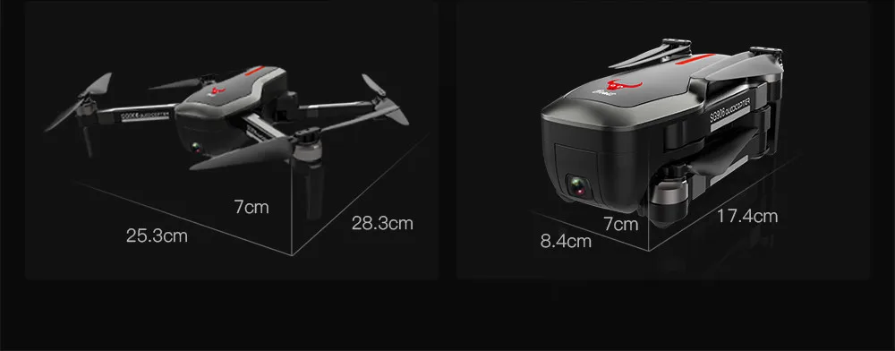 Размер квадрокоптера: 28,3x25,3x7 см (в разложенном виде) 17,4x8,4x7 см (в сложенном виде)