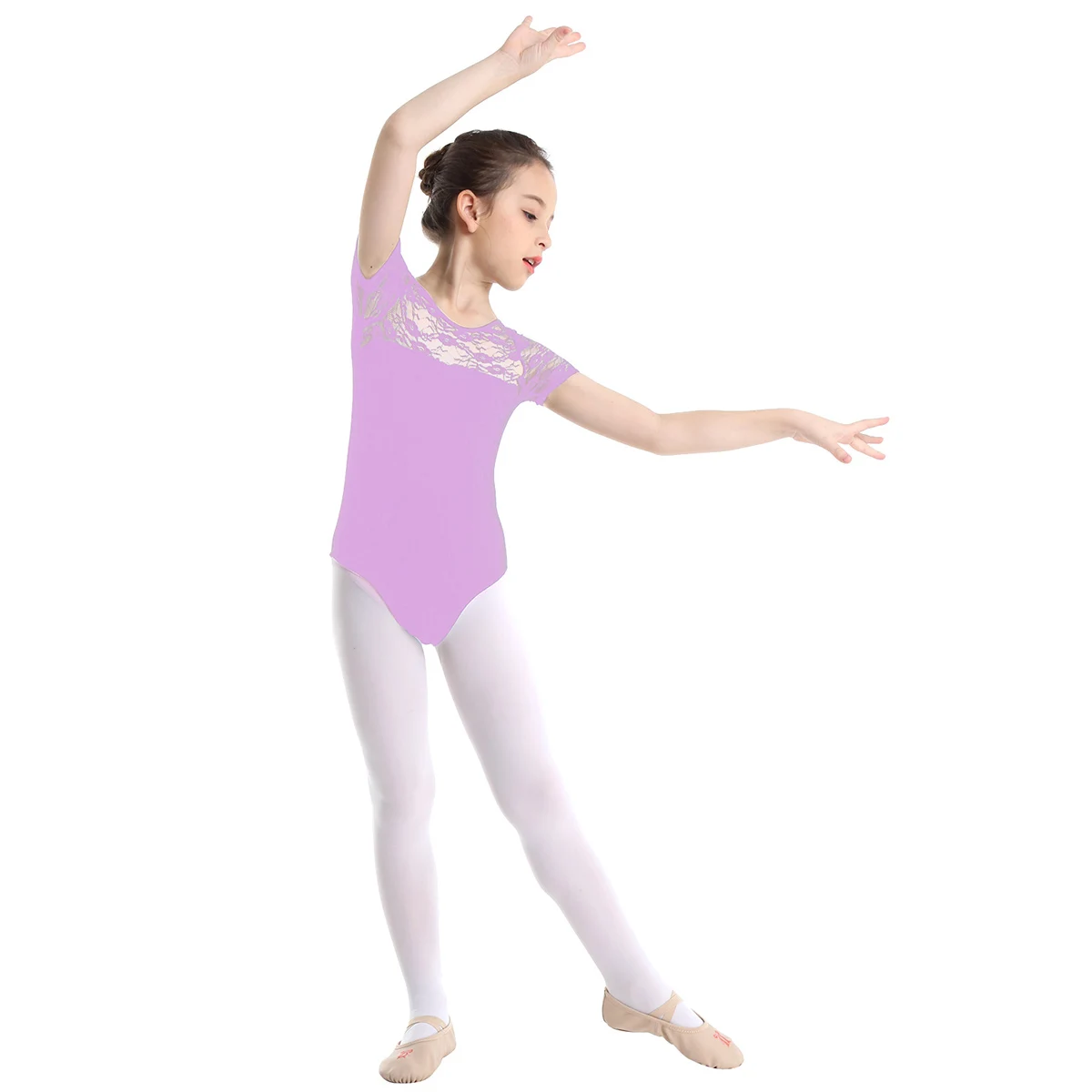 Танцевальное платье изготовлено из полиэстера, хлопка и кружева, ручная стирка. Таблица размеров означает возраст для девочек, но только для общего руководства. Короткие рукава, глубокий вырез, спереди цветочное кружево в стиле пэчворк, сзади бант. Впитывающий пот хлопковый купальник, удобно носить. Красивая Одежда для танцев для вашей девочки. Подходит для занятий танцами, гимнастических упражнений, выступлений на сцене и т. д.