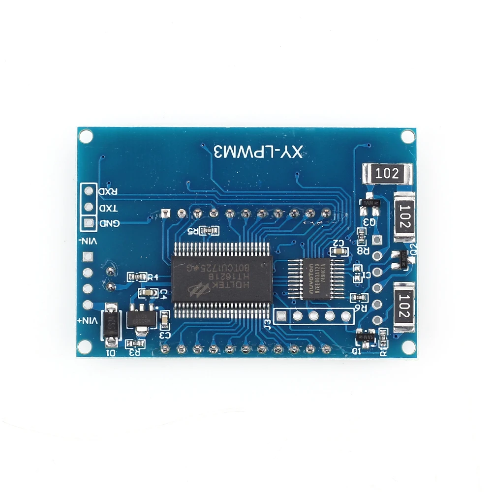 1. Описание: XY-PWM генератор сигналов-это устройство, которое обеспечивает электрические сигналы на различных частотах, квадратных волнах и выходных уровнях. Используется в качестве источника сигнала или источника возбуждения для тестирования. Широко используется в производственной практике и технологии. 2. Особенности: 1>. С внешней оболочкой; 2>. ЖК-дисплей высокой четкости; 3>. Поддержка UART; 4>. Поддержка регулировки частоты; 5>. Поддержка регулировки рабочего цикла; 6>. Высокая точность обнаружения; 7>. Поддержка функции отключения памяти; 8>.1 канал ПВМ выход. 3. Параметры: 1>. Название продукта: PWM генератор сигналов; 2>. Модель: XY-PWM; 3>. Рабочее напряжение: DC 3,3 V-30V; 4>. Диапазон частот: 1 Гц ~ 150 кГц; 5>. Точность частоты: 2%; 6>. Диапазон рабочего цикла: 0.00%-100%; 7>. Выходной ток: около 5-30 мА; 8>. Амплитуда выхода: то же, что и входное напряжение; 9>. Размер: 79*43*27 мм; 10>. Рабочая температура:-20 ℃ ~ 70 ℃; 4. Диапазон набора частот: Введите интерфейс настроек при коротком нажатии любой кнопки «freq +» или «freq-» в нормальном рабочем состоянии для выбора диапазона частот. Автоматически Переключайте частотный диапазон. Обратите внимание на положение, в котором Десятичная точка движется при нажатии кнопки. Дисплей 'XXX'. Нет десятичной точки, минимальная частота-1 Гц. Диапазон частот-1 Гц ~ 999 Гц. Дисплей X.XX'. Запятой-предпоследний, минимальная частота 0,01 кГц. Диапазон воспроизводимых частот составляет 1,00 кГц ~ 9,99 кГц. Дисплей 'XX.X'. Запятой является третье, минимальная частота 0,1 кГц. Диапазон воспроизводимых частот составляет 10,0 кГц ~ 99,9 кГц. Дисплей 'X.X.X '. Десятичная точка полностью горит, минимальная частота-1 кГц. Частотный диапазон-1 кГц ~ 150 кГц. Например: Дисплей '100 'означает частоту выхода PWM 100 Гц; Дисплей '1.01 'означает, что выходная частота PWM составляет 1,01 кГц; Дисплей '54.1 'означает, что выходная частота PWM составляет 54,1 кГц; Дисплей '1. 2,4 'означает, что выходная частота PWM составляет 124 кГц; 5. Диапазон набора рабочего цикла: Введите интерфейс настроек при коротком нажатии любой кнопки «duty +» или «duty-» в нормальном состоянии работы, чтобы выбрать рабочий цикл. Диапазон рабочего цикла составляет 0.00%-100%. 6. Используйте шаги: 1>. Подключение к источнику питания; 2>. Короткое или длинное нажатие кнопки «freq +» или «freq-» для установки частоты; 3>. Короткое или длинное нажатие кнопки «duty +» или «duty-», чтобы установить рабочий цикл; 4>. Подключение к нагрузке. 7. Коммуникационная плата интерфейса UART и настройки параметров Система поддерживает функцию загрузки данных UART и настройки параметров (уровень TTL); UART: 9600, 8, 1 1>. Установите частоту ШИМ: 'F101': установленная частота 101 Гц. '101' может заменить на 001 ~ 999; 'F1.05 ': набор частота 1,05 кГц. 1.05' может заменить 1,00 ~ 9,99; 'F10.5': набор частота 10,5 кГц. 10 г. 5' может заменить 10,0 ~ 99,9; 'F1. 0,5 ': установленная частота 105 кГц. '1. 0,5' может заменить на 1.0.0 ~ 1.5.0; 2>. Установить Рабочий цикл ШИМ: 'DXXX': рабочий цикл-XXX. 'XXX' может быть 000-100. Е. Г: 'D051' означает, что рабочий цикл PWN устанавливается как 51%. 3>. Чтение параметров набора: Отправьте «Чтение», а затем получите параметр. 4>. Возвращаемое значение: Возврат «вниз»: Установите успех. Возврат 'FALL': комплект не работает. 8. Применение: 1>. Генератор сигналов квадратной волны, генерирующий сигнал квадратной волны для экспериментальной разработки; 2>. Используется для генерации квадратного волнового сигнала, который контролирует драйвер двигателя; 3>. Генери