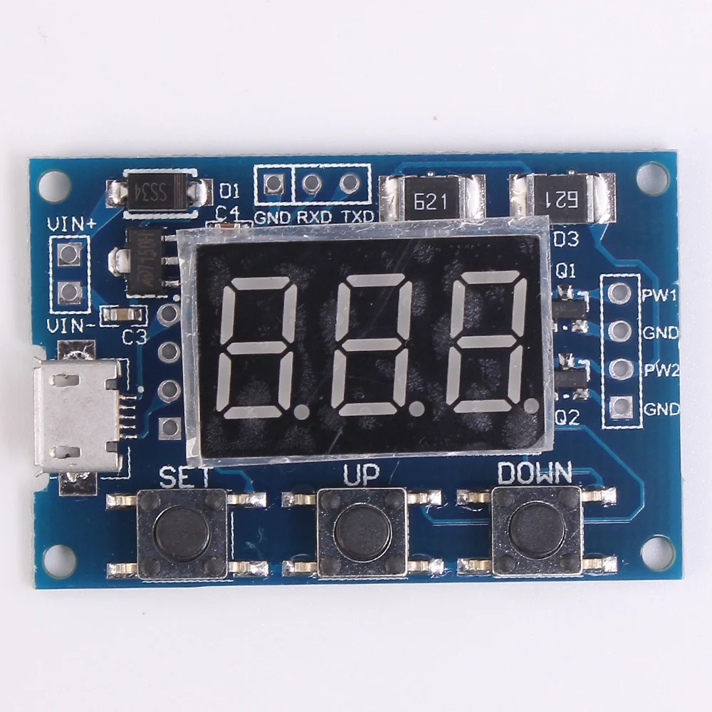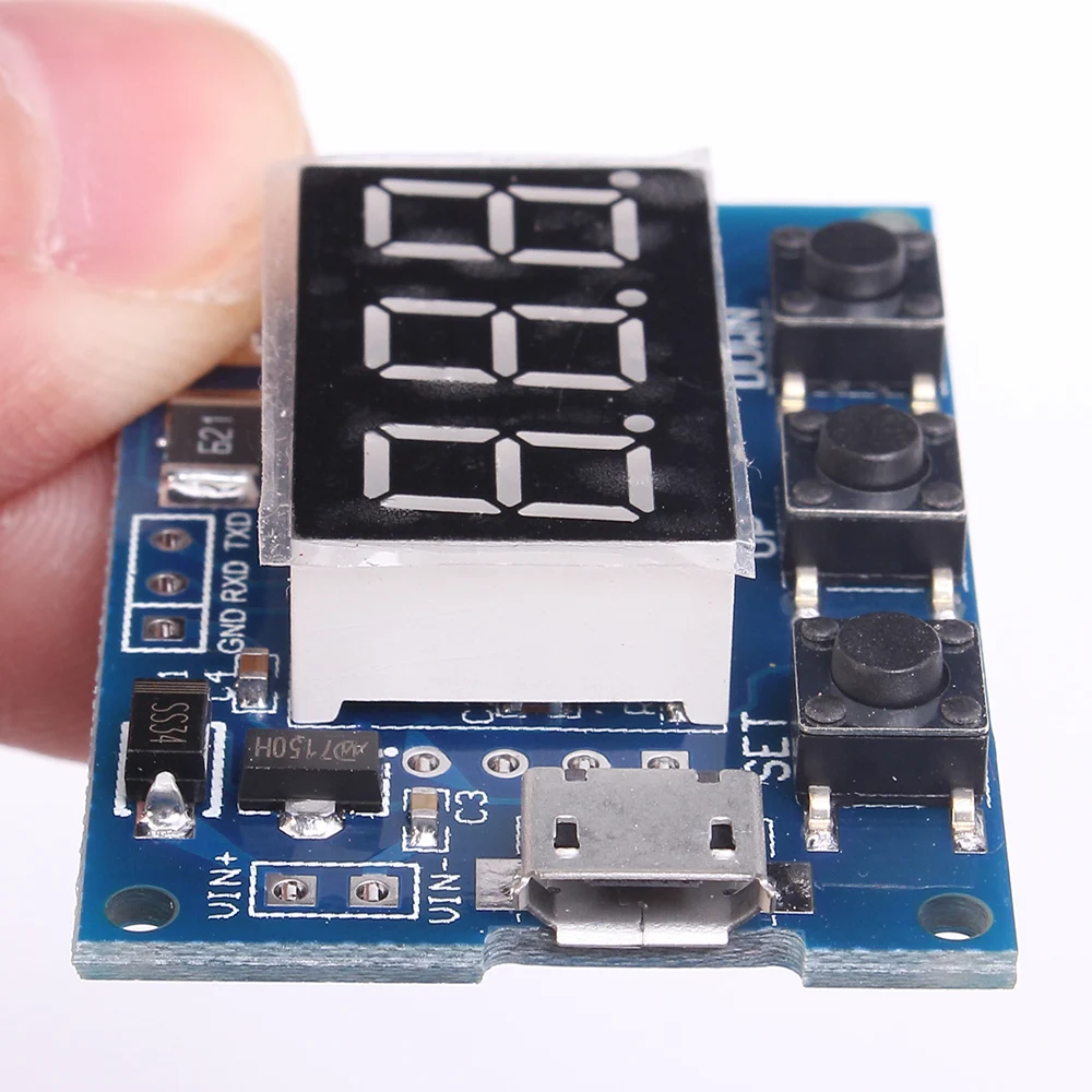 PWM импульсная Частота Рабочий цикл регулируемый модуль прямоугольная волна генератор сигналов Основные характеристики модуля: 1. Частота ЖК-дисплея и рабочий цикл, очень четкие, PWM выход может быть установлен на частоту и рабочий цикл; 2. Широкий диапазон частот, высокая точность; 3. Последовательная связь, TTL уровень Во-первых, описание модуля PWM выход, вы можете установить частоту, рабочий цикл; Частота делится на четыре диапазона, автоматическое переключение: 1. XXX (без десятичной точки): самый маленький блок-1 Гц, диапазон значений-1 Гц ~ 999 Гц; 2. X.XX (знака после запятой в платье на празднование ста) самый маленький блок 0,01 кГц, модельный ряд 1,00 кГц ~ 9,99 кГц; 3. X X.X (знака после запятой в десять): самый маленький блок 0,1 кГц; Диапазона значений 10,0 кГц ~ 99,9 кГц 4. X.X.X (Десятичная точка в десять сот): самая маленькая единица-1 кГц; Диапазон значений-1 кГц ~ 150 кГц Частотный дисплей: 100 показывает PWM выход 100 Гц импульса; 1,01 показывает PWM выход 1,01 K импульса; 54,1 показывает, что выход ШИМ имеет Пульс 54,1 кГц; 1.2.4 означает, что PWM выход 124 кГц импульса; Диапазон рабочего цикла: 0 ~ 100%; Все заданные параметры автоматически сохранены. Во-вторых, настройки параметров Модуль имеет четыре независимых клавиши, используемые для настройки частоты и рабочего цикла, поддержка касания (увеличение или уменьшение блока) и длительное нажатие (быстрое увеличение или уменьшение), установка параметров автоматически сохраняет, выключение питания не теряется. В-третьих, параметры модуля: 1. Рабочее напряжение: 3,3 ~ 30V; 2. Диапазон частот: 1 Гц ~ 150 кГц; 3. Точность частоты: точность в каждом диапазоне составляет около 2%; 4. Грузоподъемность сигнала: выходной ток может быть около 5 ~ 30 мА; 5. Амплитуда выхода: амплитуда ШИМ равна напряжению питания; 6. Температура окружающей среды: -20 ~ + 70 ℃. В-четвертых, сфера применения: 1. Используйте d в качестве генератора сигналов квадратной волны, генерируйте квадратный волновой сигнал для экспериментальной разработки и использования; 2. Используется для генерации квадратного волнового сигнала, который контролирует драйвер двигателя; 3. Генерирует Регулируемый Пульс для использования MCU; 4. Генерируйте Регулируемый пульс, Управляйте соответствующей схемой (скорость затемнения PWM и другие приложения). 5, серийное управление (одноchip TTL уровень связи) Стандарт связи: 9600 бит данных bps: 8 Стоп-бит: 1 Контрольная цифра: нет Управление потоком: нет 1. Установите частоту ШИМ "F101": Установите частоту до 101 Гц (001 до 999) "F1.05": Установите частоту 1,05 кГц (1,00 ~ 9,99) "F10.5": Установите частоту до 10,5 кГц (10,0 ~ 99,9) "F1.0.5": Установите частоту 105 кГц (1.0.0 ~ 1.5.0) 2. Установите рабочий цикл ШИМ "DXXX": Установите рабочий цикл PWM на XXX; (001 ~ 100) Например, D050, установите рабочий цикл PWM 50% 3. Прочитайте заданные параметры Отправьте строку «чтение», чтобы прочитать заданные параметры. Набор успешно возвращается: вниз; Не удалось вернуть установку: осень.