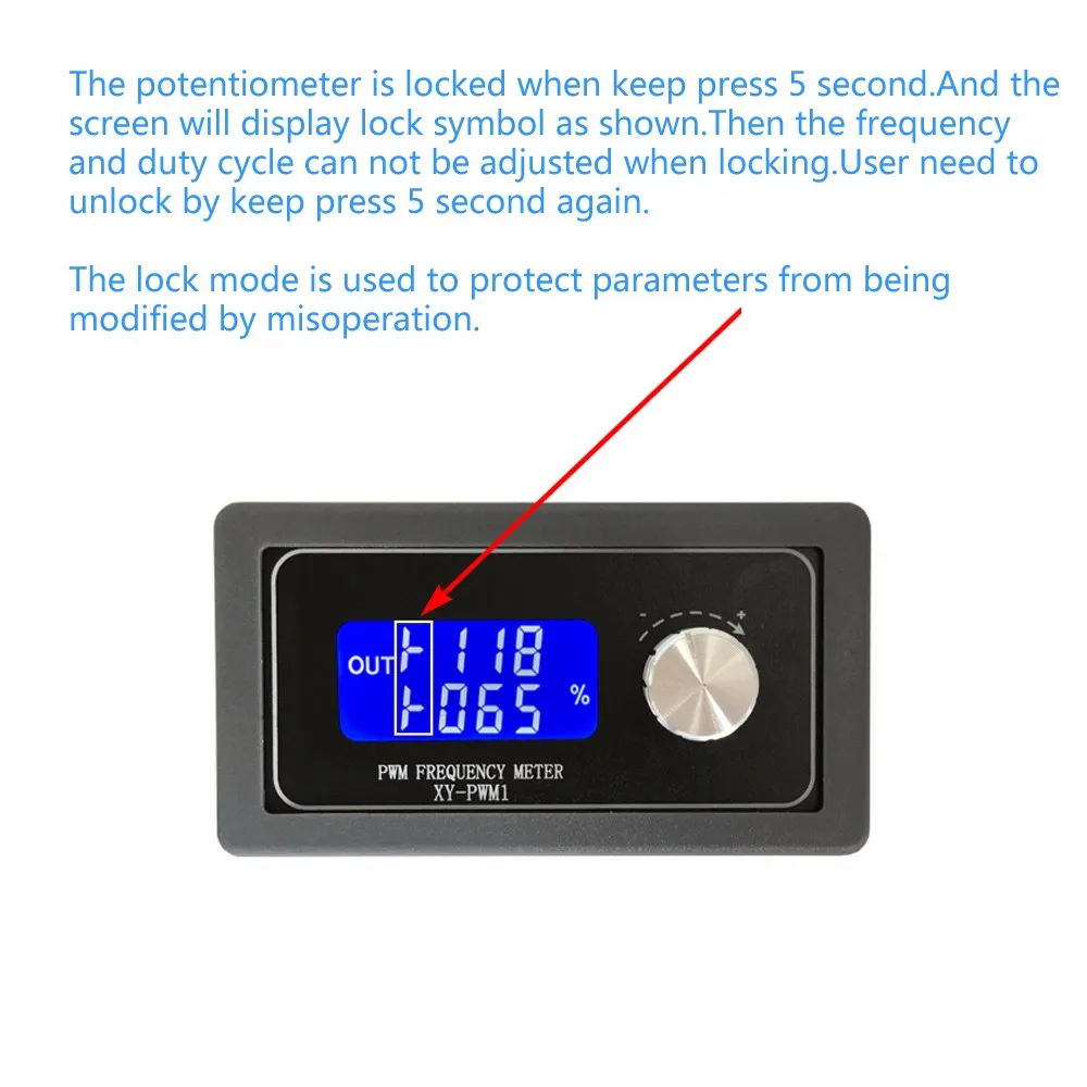 1. Описание: XY-PWM1 генератор сигналов-это устройство, которое обеспечивает электрические сигналы на различных частотах, квадратных волнах и выходных уровнях. Используется в качестве источника сигнала или источника возбуждения для тестирования. Широко используется в производственной практике и технологии. 2. Особенности: 1>. С внешним корпусом 2>. ЖК-дисплей высокой четкости 3>. Поддержка UART 4>. Поддержка регулировки частоты 5>. Поддержка регулировки рабочего цикла 6>. Высокая точность обнаружения 7>. Поддержка функции отключения памяти 8>.1 канал ПВМ выход 9>. Двойной режим работы 10>. Ручка поддерживает функцию блокировки, чтобы избежать неправильной работы 3. Параметры: 1>. Название продукта: XY-PWM1 PWM генератор сигналов; 2>. Модель: XY-PWM1; 3>. Работа Напряжение: DC 3,3 V-30V; 4>. Частотный диапазон (нормальный режим):1 Гц ~ 150 кГц; 5>. Диапазон частот (точный режим):1 Гц ~ 15 кГц; 6>. Точность частоты: 2%; 7>. Точность рабочего цикла: 1% при нормальном режиме; 8>. Точность рабочего цикла: 0.1% в точном режиме; 9>. Диапазон рабочего цикла: 0.00%-100%; 10>. Выходной ток: около 5-30 мА; 11>. Амплитуда выхода: то же, что и входное напряжение; 12>. Рабочая температура:-40 ℃ ~ 85 ℃; 13>. Рабочая влажность: 0% ~ 95% относительной влажности; 14>. Размер: 79*43*37 мм; 4. Диапазон набора частот: Существует два режима работы, поэтому он имеет два диапазона частот. Нормальный режим: Частотный диапазон 1 Гц ~ 150 кГц. Диапазон рабочего цикла 000%-100%. Точность рабочего цикла 1%. Точный режим: Диапазон частот 1 Гц ~ 15 кГц. Диапазон рабочего цикла 0.00%-100%. Точность рабочего цикла 0.1%. Введите интерфейс настроек при коротком нажатии поворотного переключателя в нормальном рабочем состоянии для выбора диапазона частот. Поворотный потенциометр для установки значения частоты. Удерживайте поворотный переключатель в течение 10 секунд, чтобы переключить обычный режим и точный режим. Удерживайте нажатой в течение 5 секунд для фиксации параметров, чтобы защитить параметры от изменения. Обратите внимание на положение, в котором Десятичная точка движется при поворотном потенциометре .. Дисплей 'XXX'. Нет десятичной точки, минимальная частота-1 Гц. Диапазон частот-1 Гц ~ 999 Гц. Дисплей X.XX'. Запятой-предпоследний, минимальная частота 0,01 кГц. Диапазон воспроизводимых частот составляет 1,00 кГц ~ 9,99 кГц. Дисплей 'XX.X'. Запятой является третье, минимальная частота 0,1 кГц. Диапазон воспроизводимых частот составляет 10,0 кГц ~ 99,9 кГц. Дисплей 'X.X.X '. Десятичная точка полностью горит, минимальная частота-1 кГц. Частотный диапазон-1 кГц ~ 150 кГц. Например: Дисплей '100 'означает частоту выхода PWM 100 Гц; Дисплей '1.91 'означает, что выходная частота PWM составляет 1,91 кГц; Дисплей '52.1 'означает, что выходная частота PWM составляет 52,1 кГц; Дисплей '1. 3,4 'означает, что выходная частота PWM составляет 134 кГц; 5. Диапазон набора рабочего цикла: Короткое нажатие потенциометра для выбора рабочего цикла и поворотного потенциометра для установки значения рабочего цикла. 6. Используйте шаги: 1>. Подключение к источнику питания; 2>. Нажмите поворотный переключатель в течение 10 секунд для переключения нормального режима и точного режима; 3>. Короткий поворотный переключатель для установки частоты и изменения значения с помощью вращающегося переключателя; 4>. Нажмите поворотный переключатель в течение 2 секунд, чтобы установить рабочий цикл; 5> удерживайте нажатие в течение 5 секунд, чтобы зафиксиров